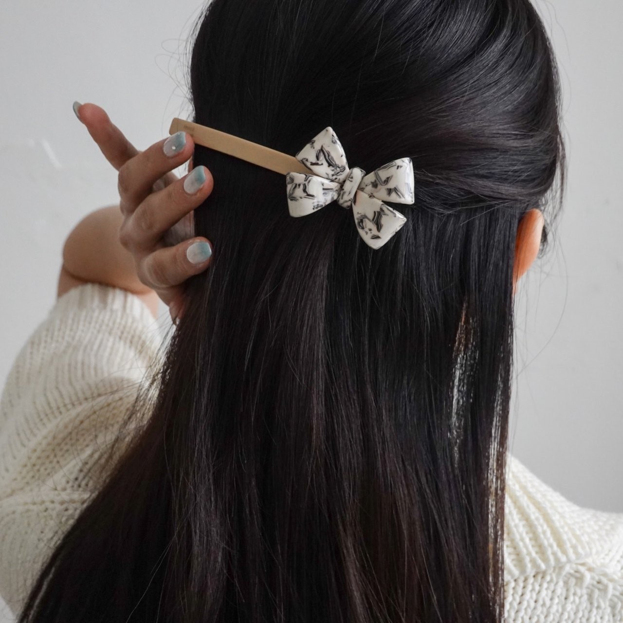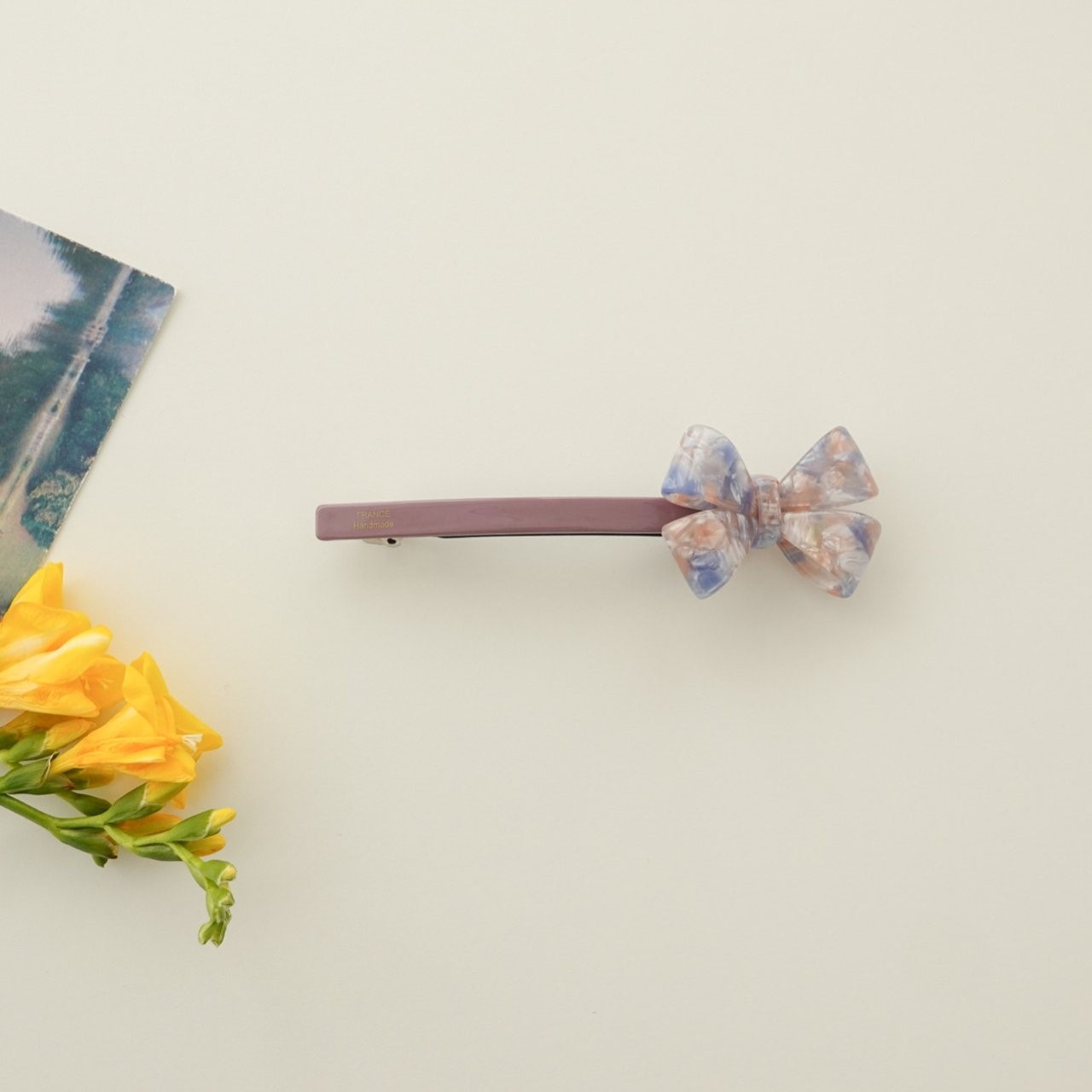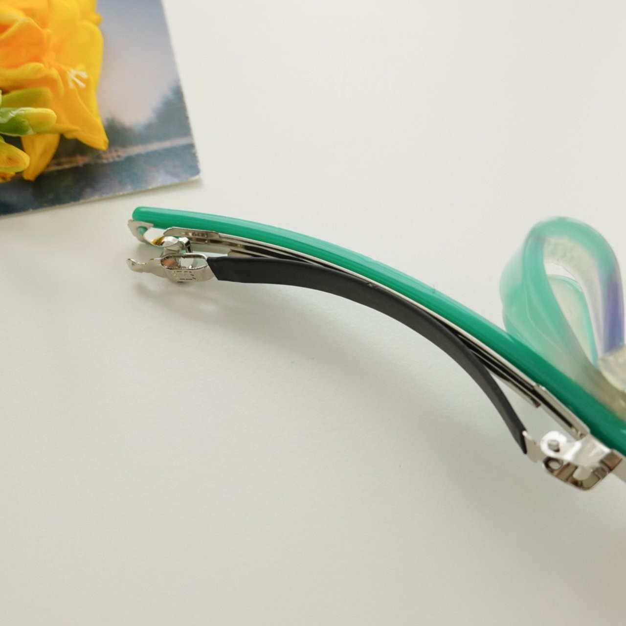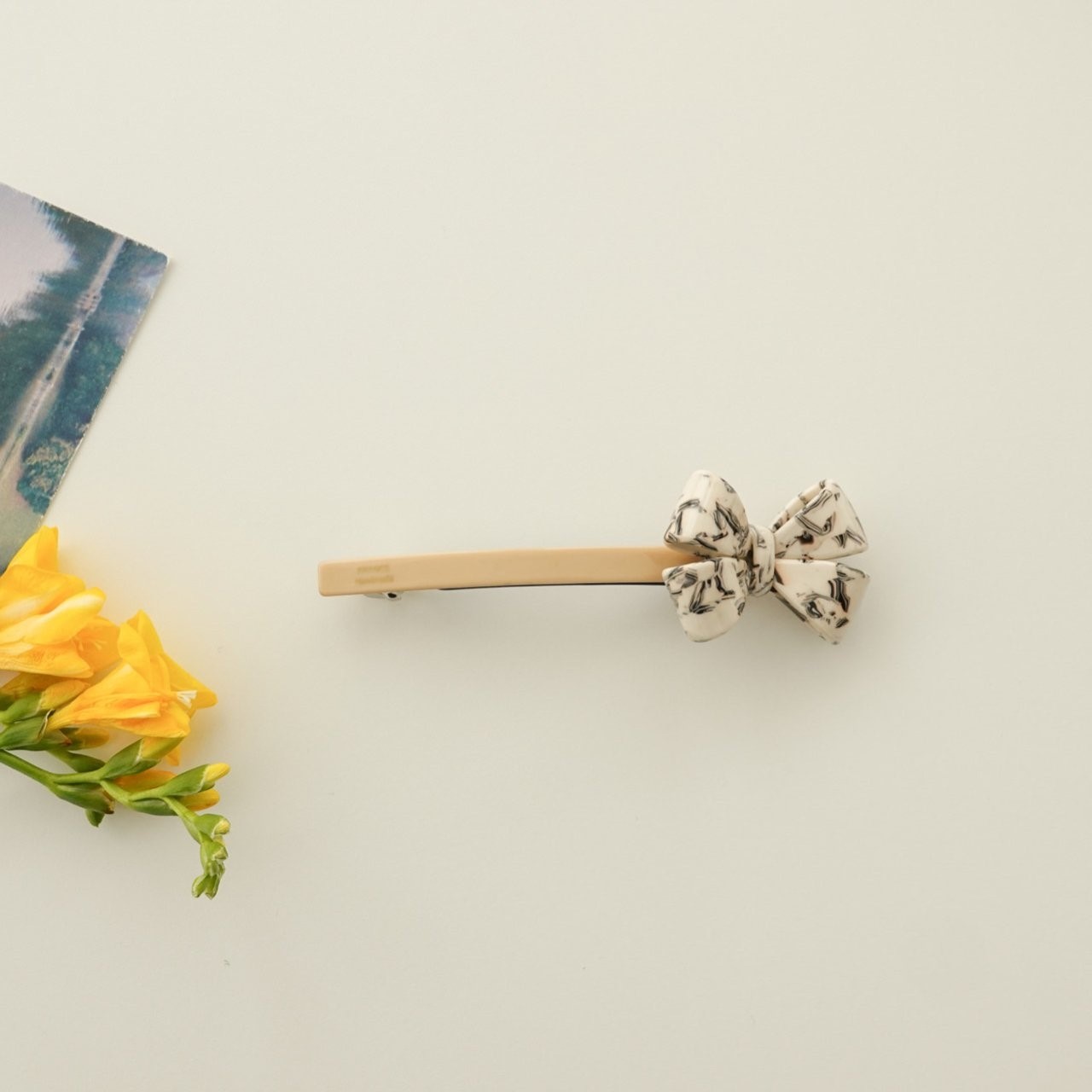 品名:H3004 셀룰로이드 리본 헤어핀 ◎※☞颜色:그린, 베이지, 오렌지, 퍼플 ◎※☞尺寸:F ◎※☞材质:腈纶 0%,스틸 0% 翻译