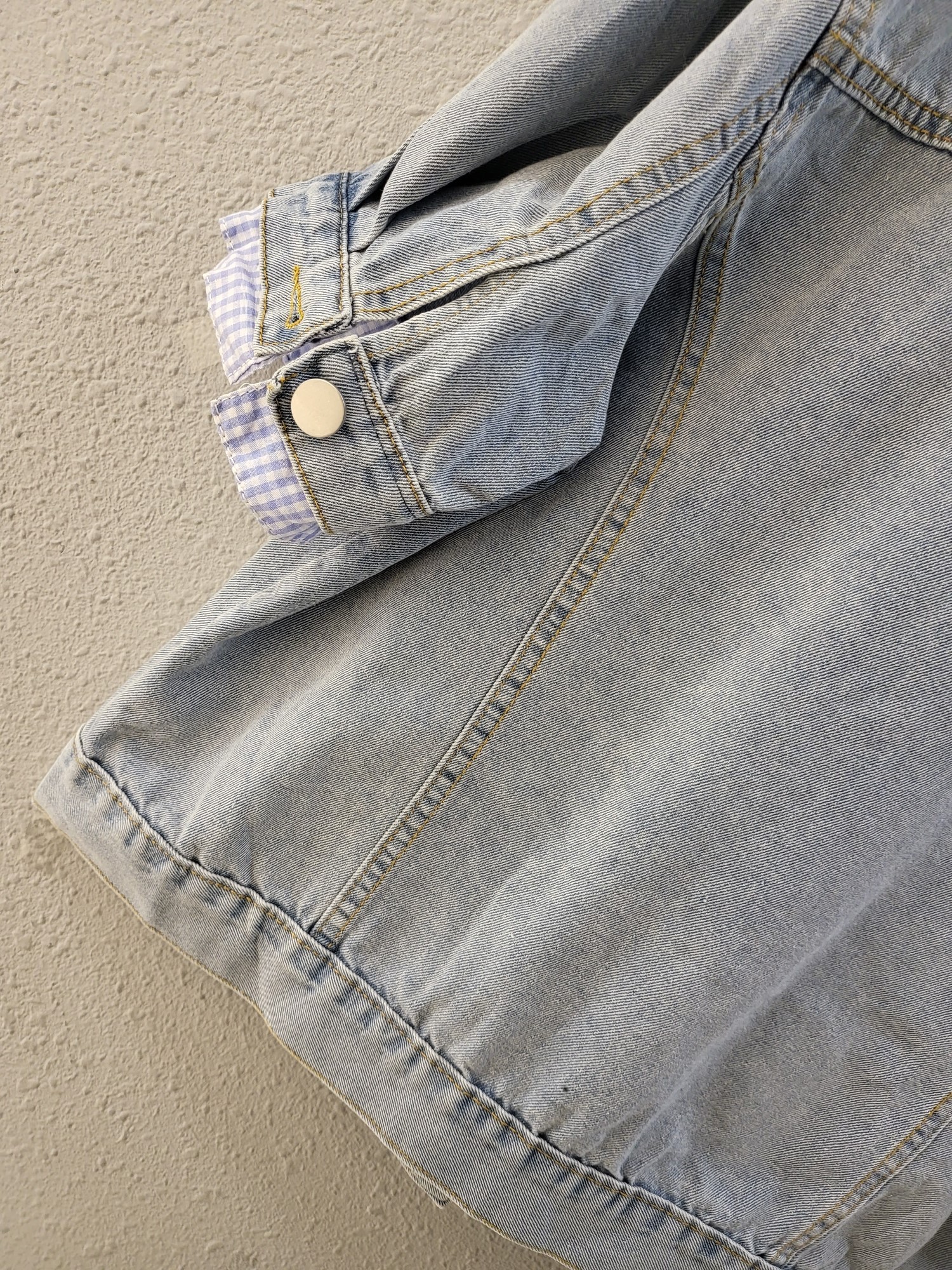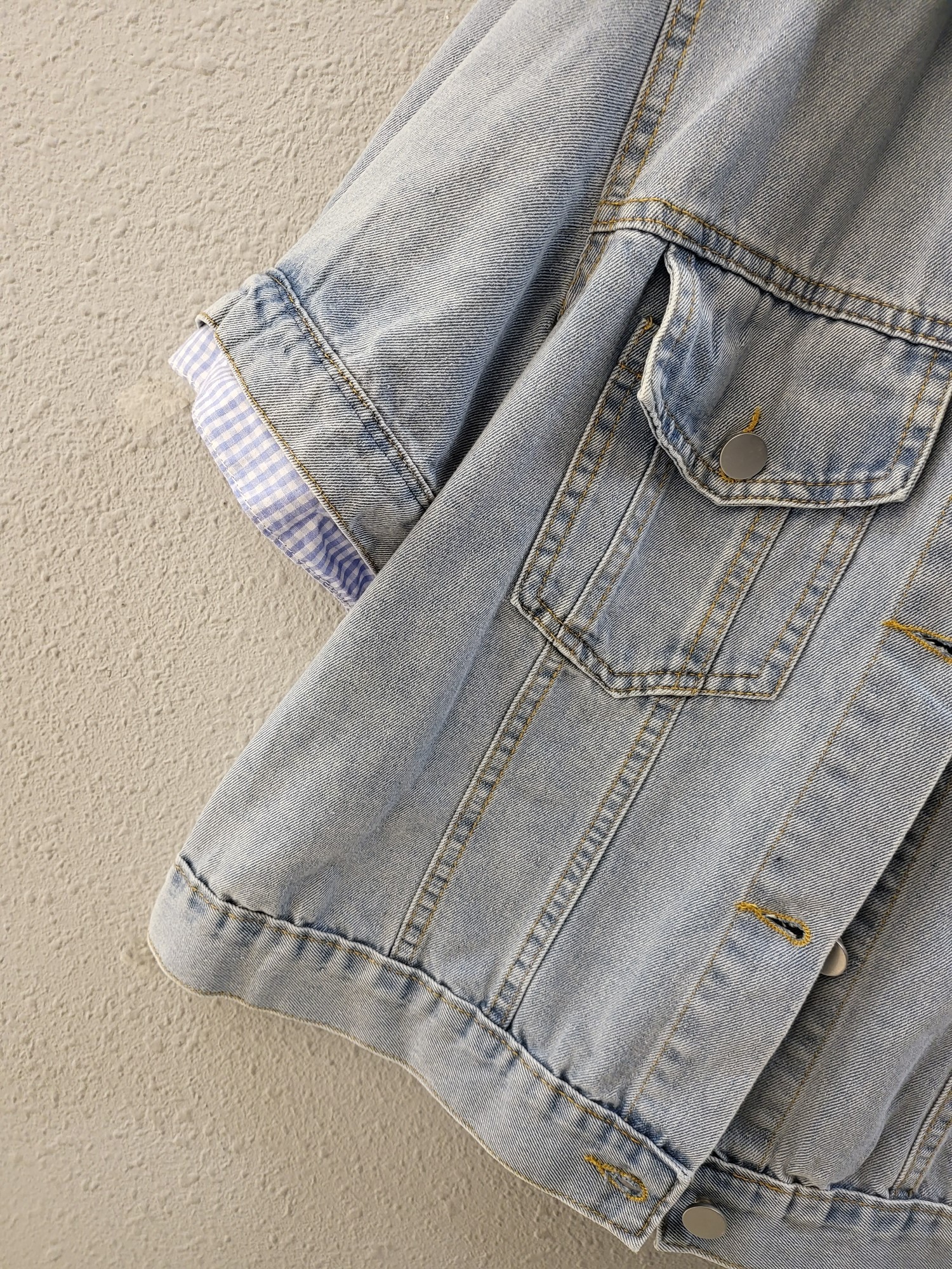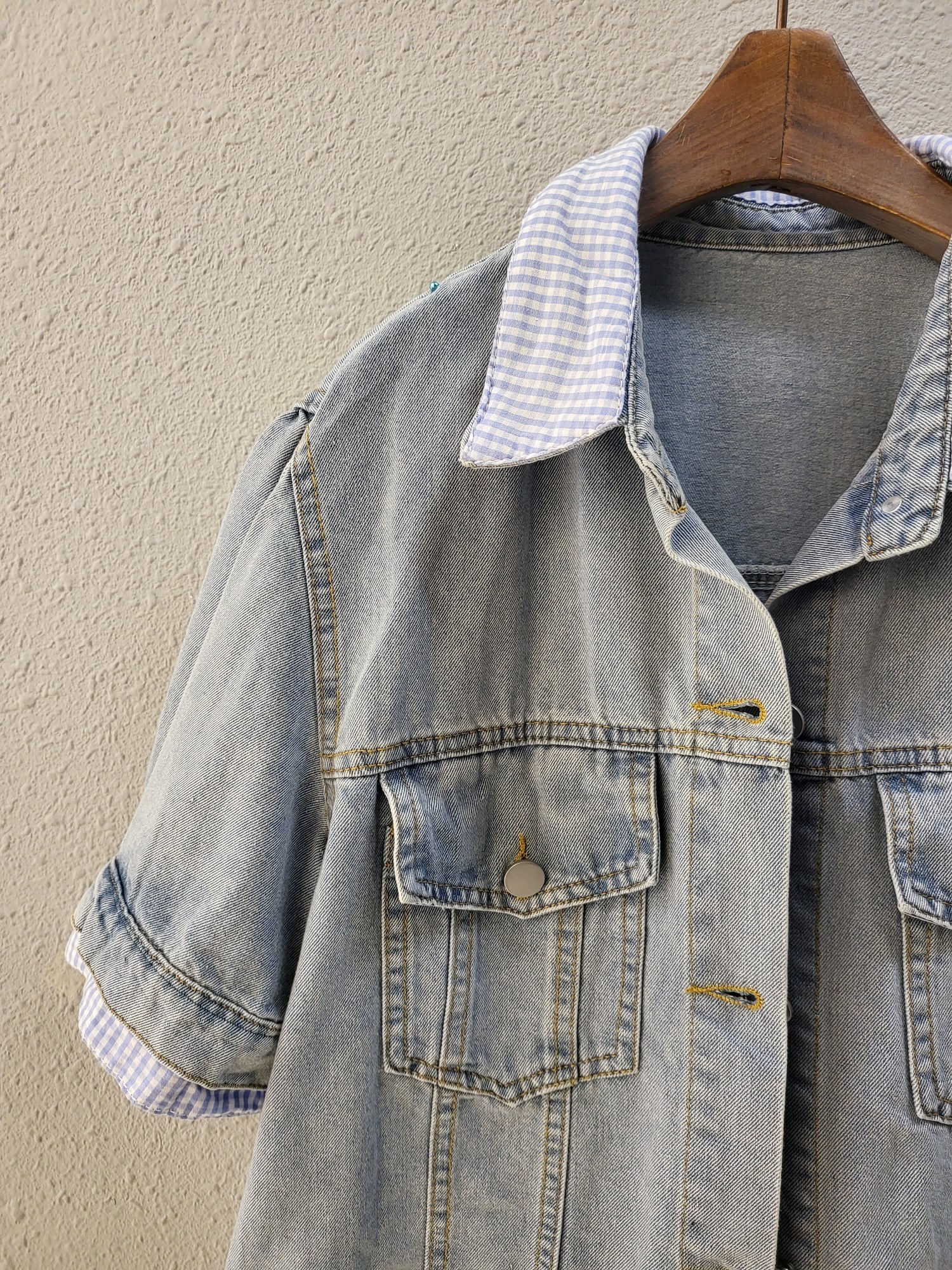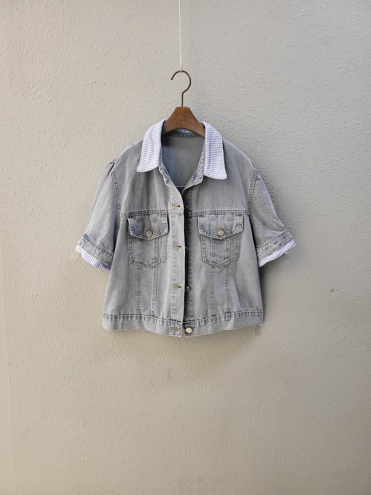 品名:체크 이중 배색 캐쥬얼 데님 자켓 ◎※☞颜色:청 ◎※☞尺寸:FREE ◎※☞材质:纯棉 100% ◎※☞注意事项:只能干洗,只能手洗,不能手洗,机洗,不能使用漂白剂,不能烘干,不能熨烫,不能曲折 翻译