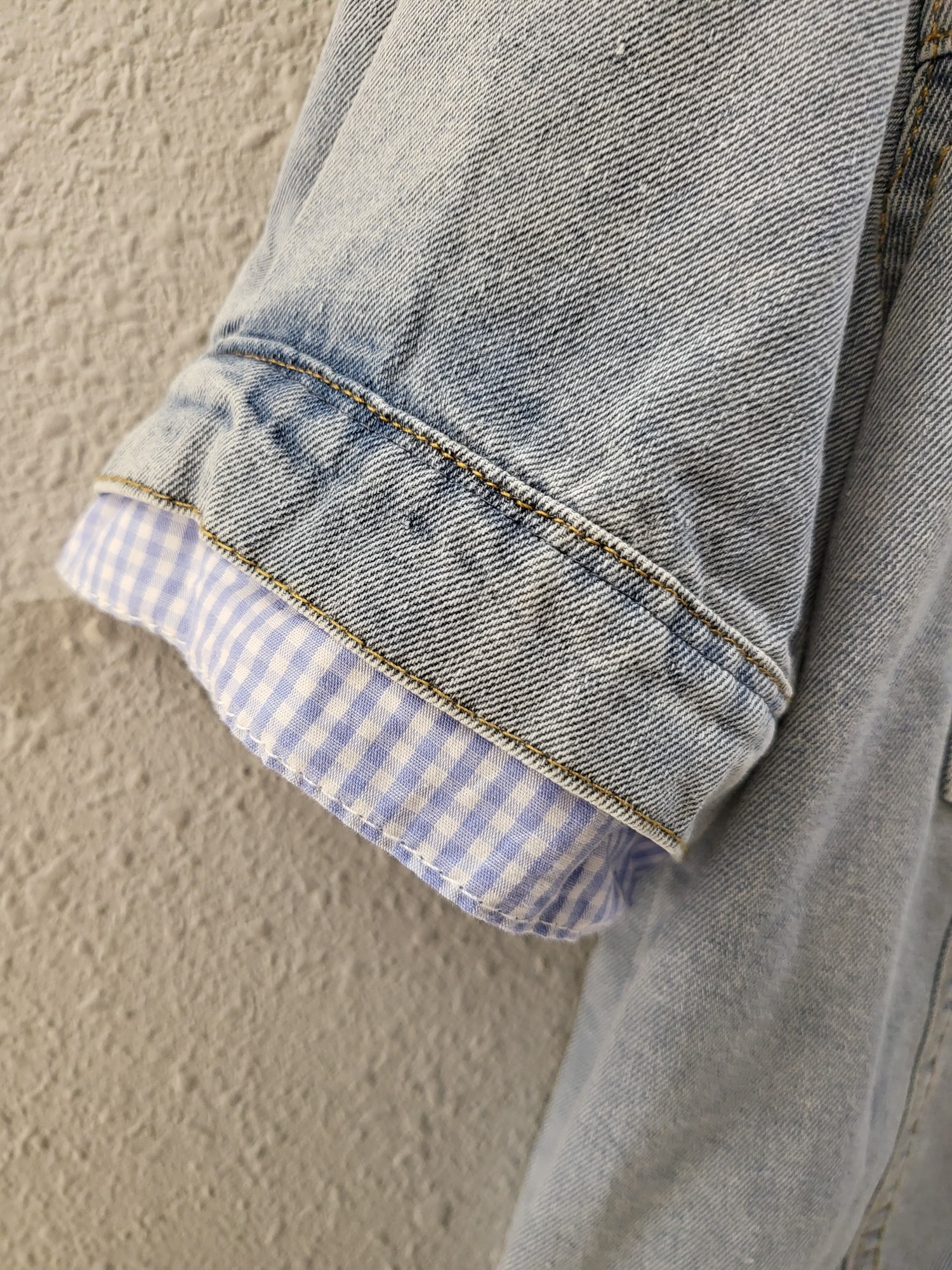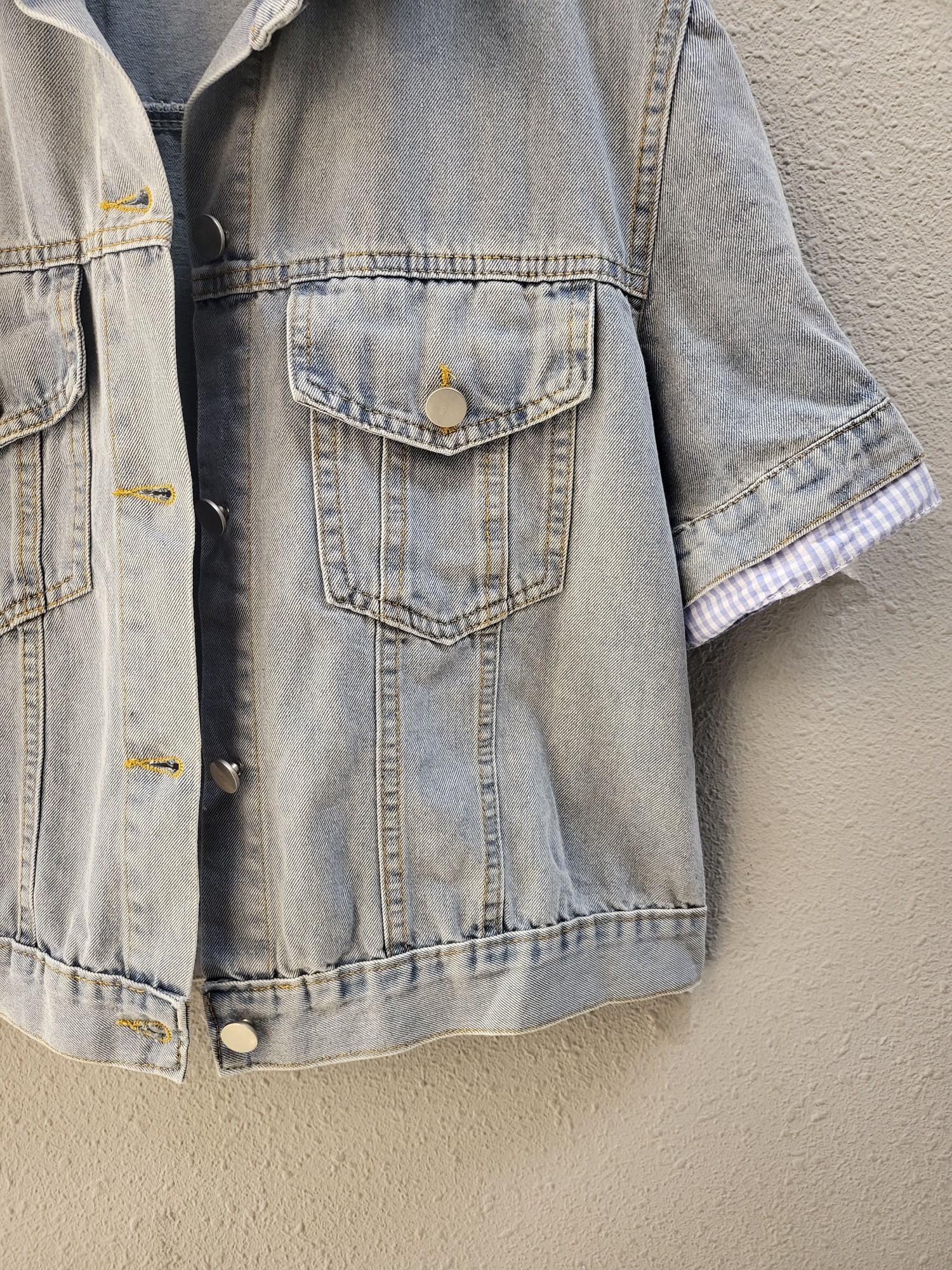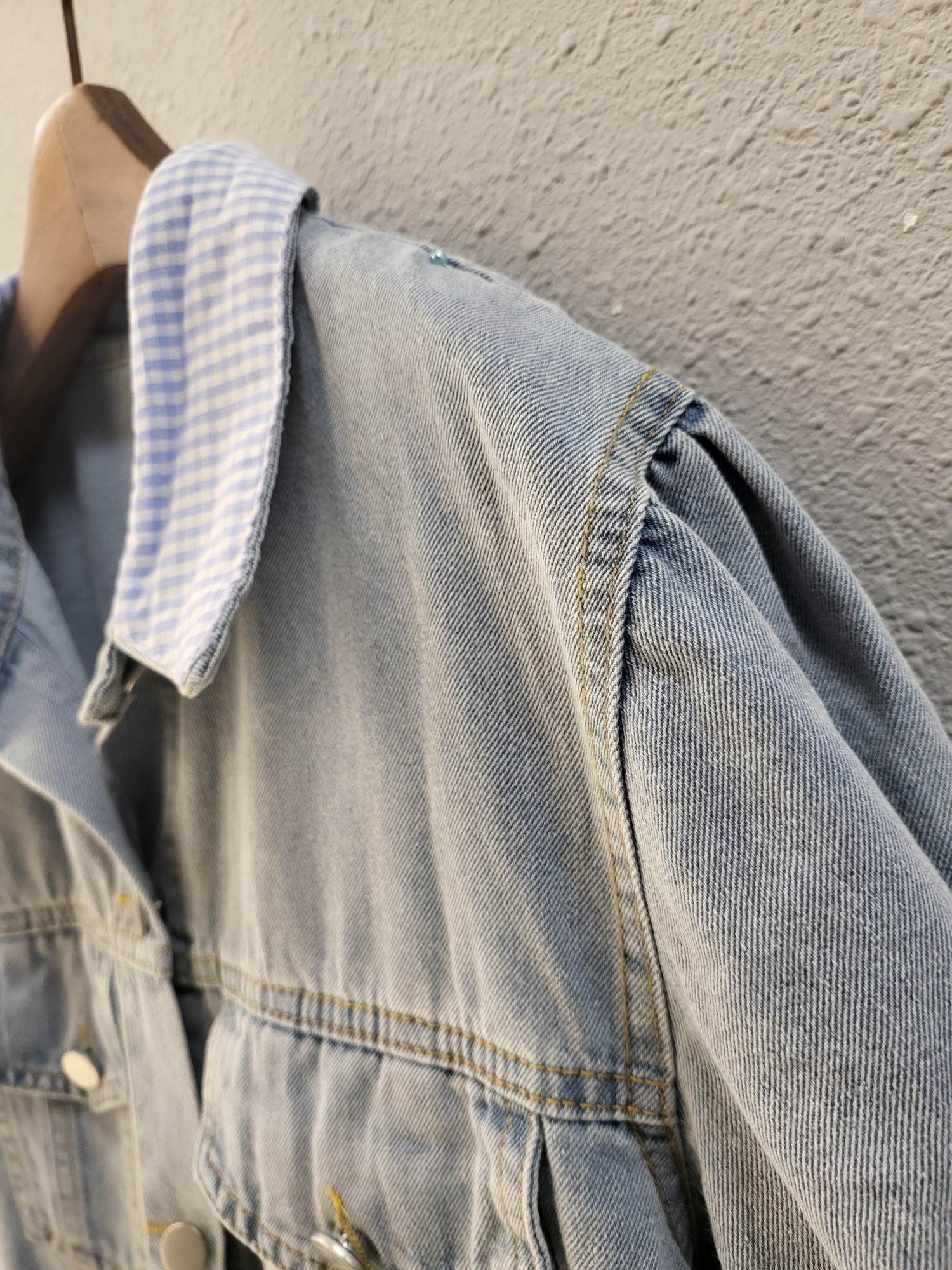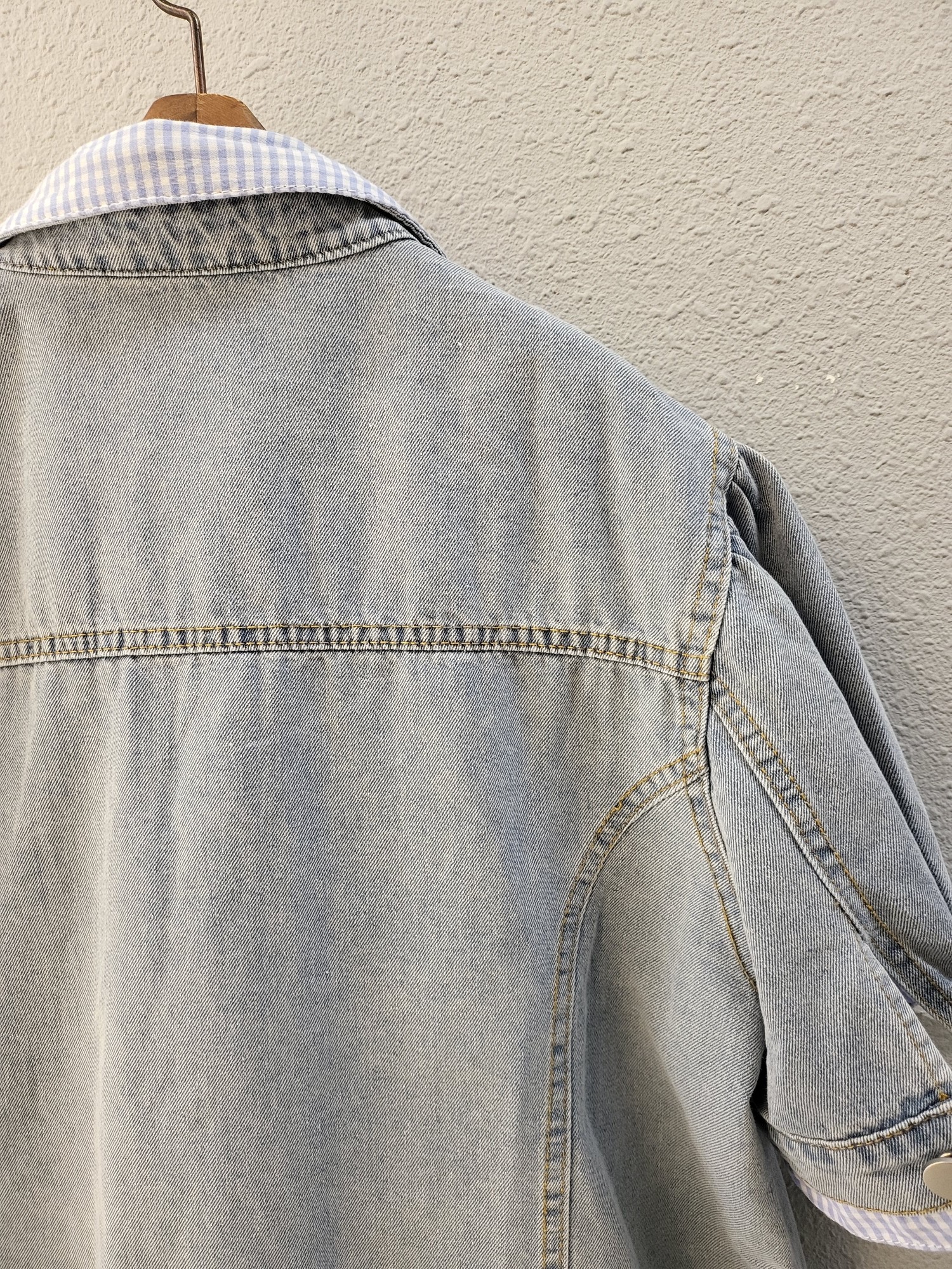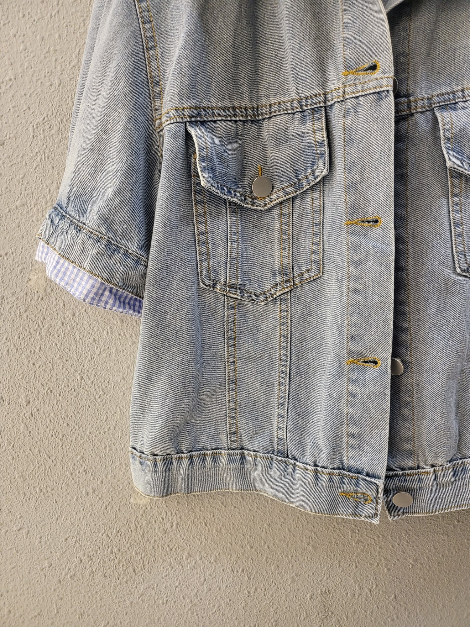 品名:체크 이중 배색 캐쥬얼 데님 자켓 ◎※☞颜色:청 ◎※☞尺寸:FREE ◎※☞材质:纯棉 100% ◎※☞注意事项:只能干洗,只能手洗,不能手洗,机洗,不能使用漂白剂,不能烘干,不能熨烫,不能曲折 翻译