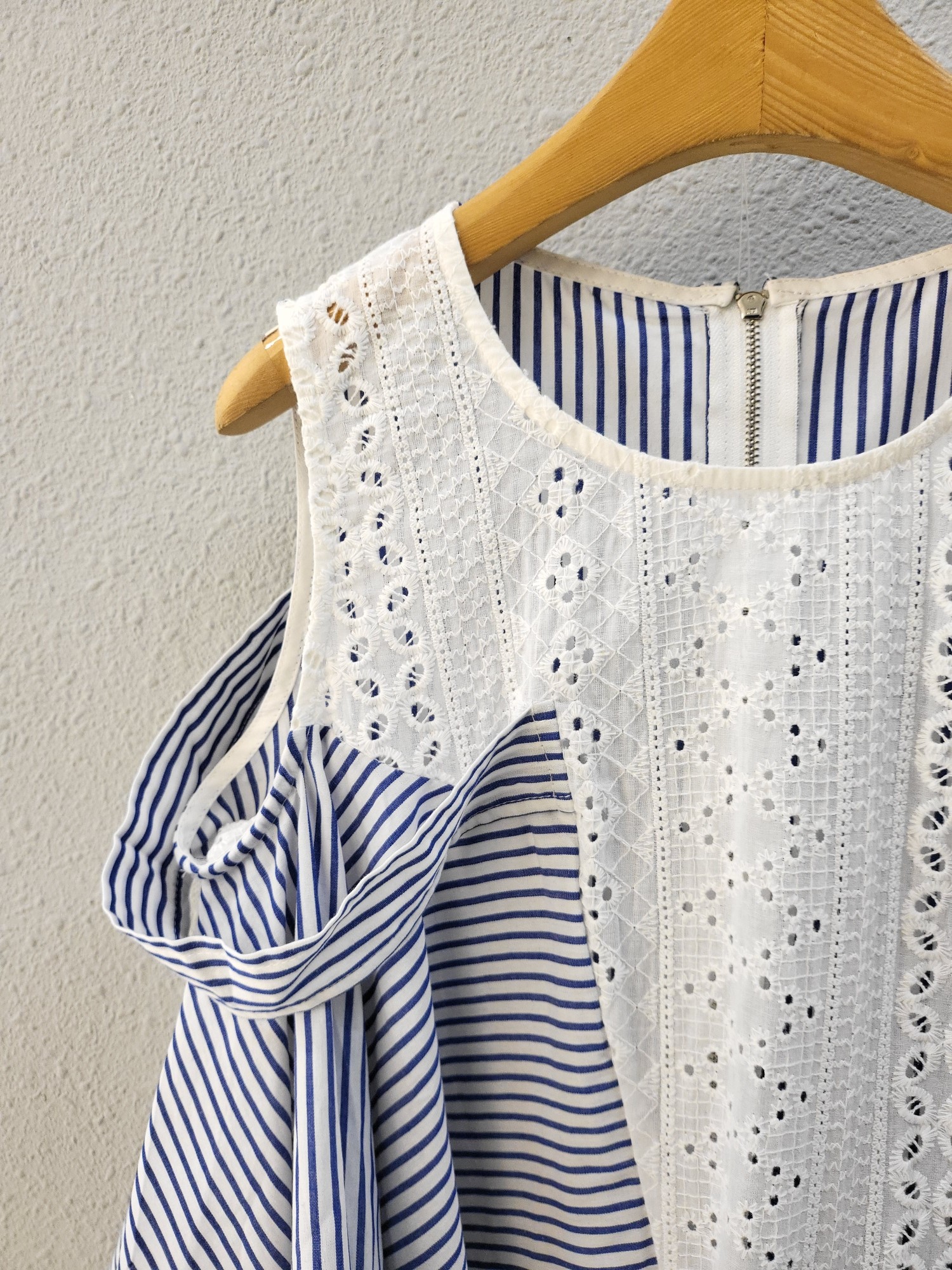 品名:자수 레이스 배색 스트라이프 블라우스 ◎※☞颜色:블랙, 블루 ◎※☞尺寸:FREE ◎※☞材质:纯棉 100% 翻译