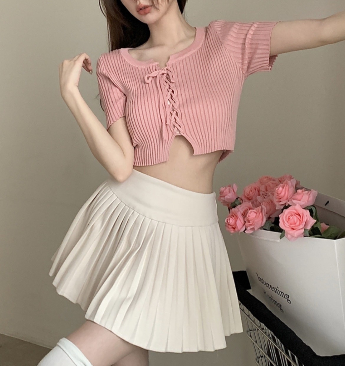 品名:엑스끈크롭가디건 #여성상의로맨틱시크섹시간절기여름봄러블리 ◎※☞颜色:베이지, 블랙, 아이보리, 핑크 ◎※☞尺寸:FREE ◎※☞材质:聚酯 100% 翻译