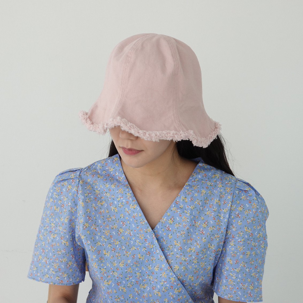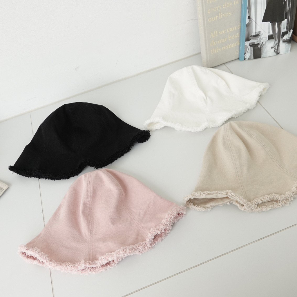 品名:BH1173 벨 데미지 버킷햇 ◎※☞颜色:베이지, 블랙, 핑크, 화이트 ◎※☞尺寸:F ◎※☞材质:纯棉 100% 翻译