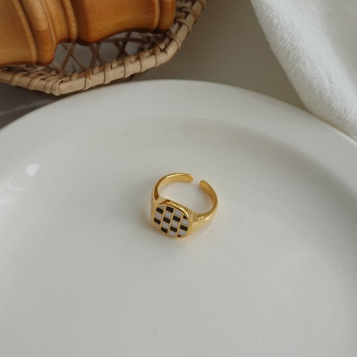品名:R3010 체커 24k 골드도금 반지 ◎※☞颜色:골드, 실버 ◎※☞尺寸:FREE ◎※☞材质:镀金 0% 翻译