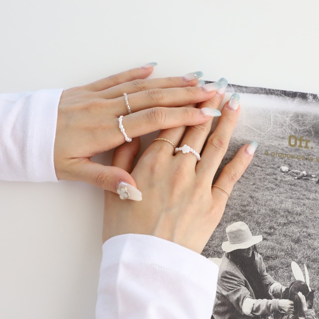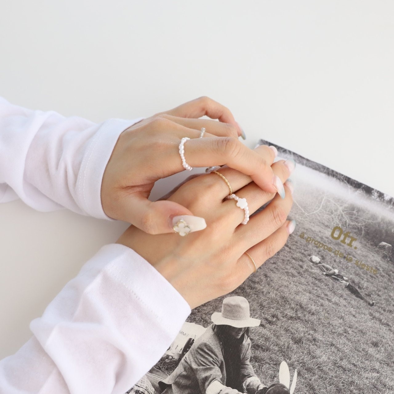 品名:R3009 꽃 진주 반지 세트 (5ea) ◎※☞颜色:골드, 실버 ◎※☞尺寸:FREE ◎※☞材质:镀金 0% 翻译