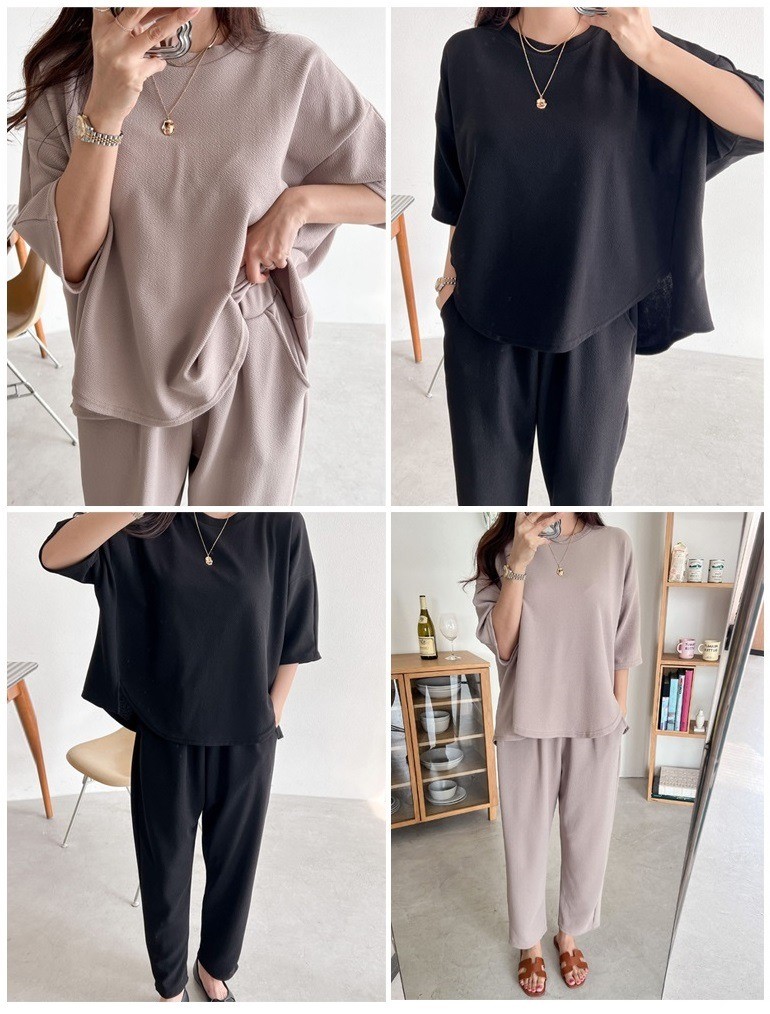品名:23 (무드세미-SET)링클프리_구김없음_세미배기_ 미시1위_원마일룩_기획 ◎※☞颜色:검정셋, 베이지셋 ◎※☞尺寸:FREE ◎※☞材质:聚酯 95%,스판 5% 翻译