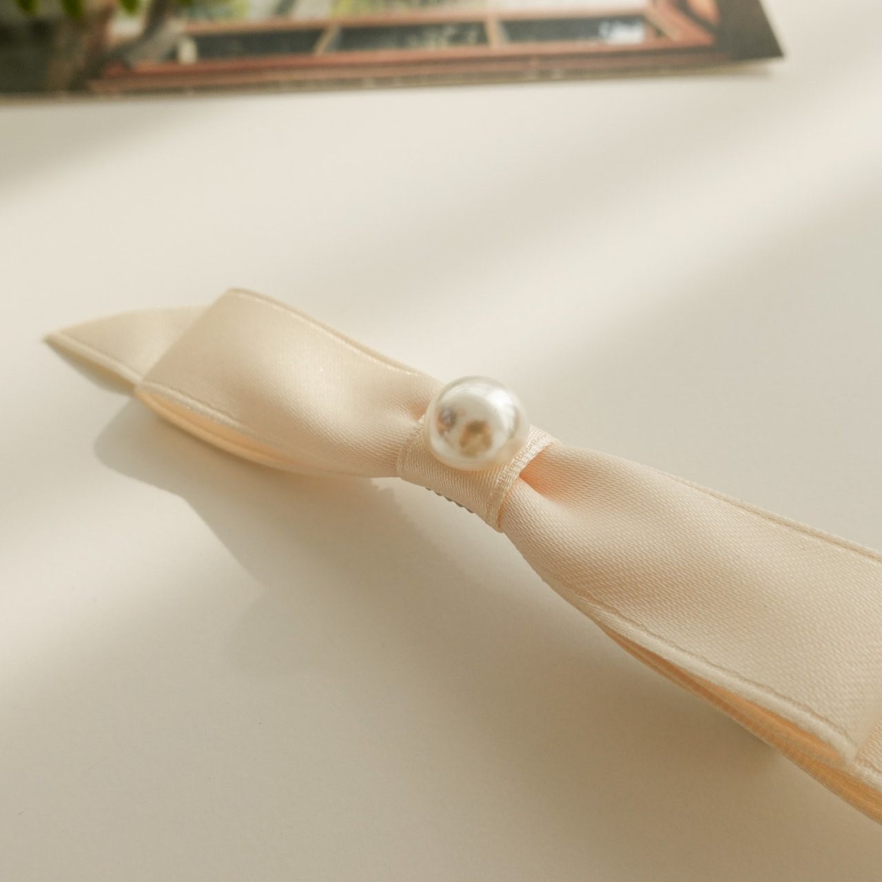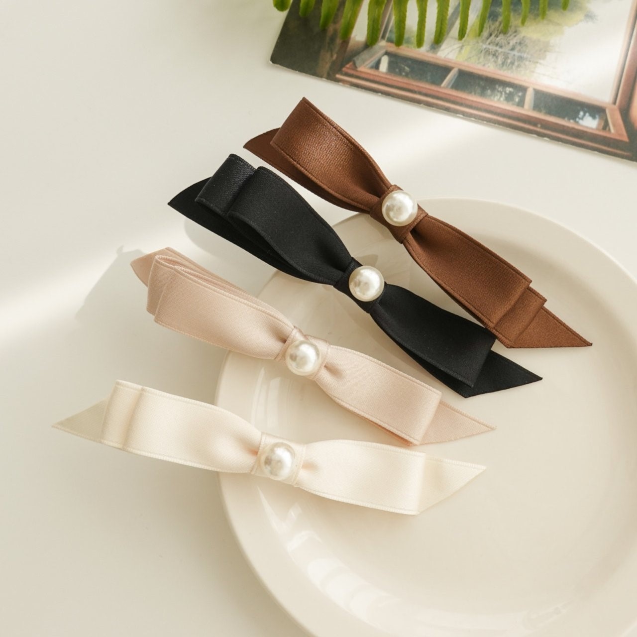 品名:H3009 진주 리본 헤어 집게핀 ◎※☞颜色:베이지, 브라운, 블랙, 아이보리 ◎※☞尺寸:F ◎※☞材质:스틸 0% 翻译