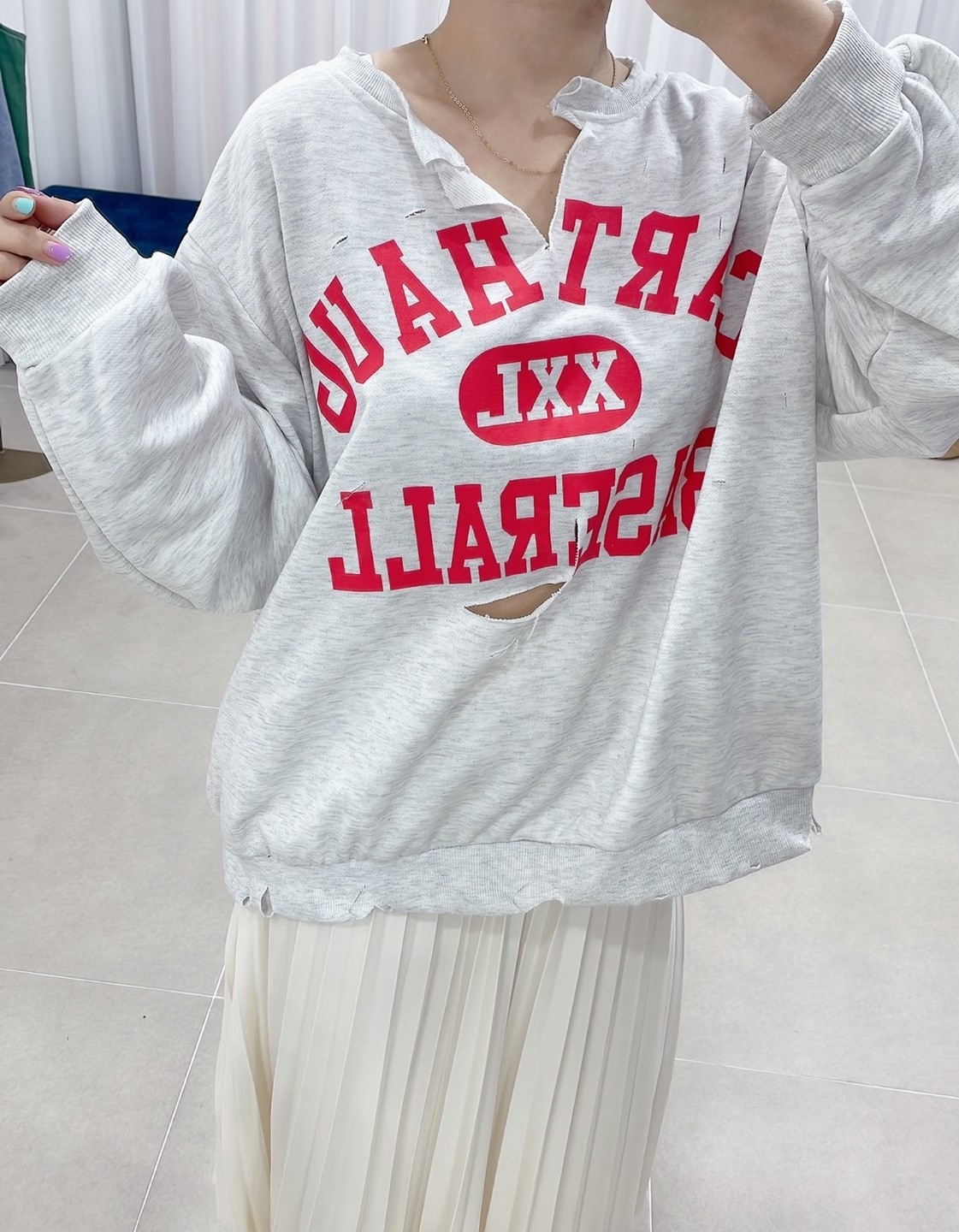 品名:구제베이스볼티셔츠 #여성상의로맨틱시크섹시캐주얼간절기봄나들이룩 ◎※☞颜色:그레이, 블랙 ◎※☞尺寸:FREE ◎※☞材质:纯棉 100% 翻译