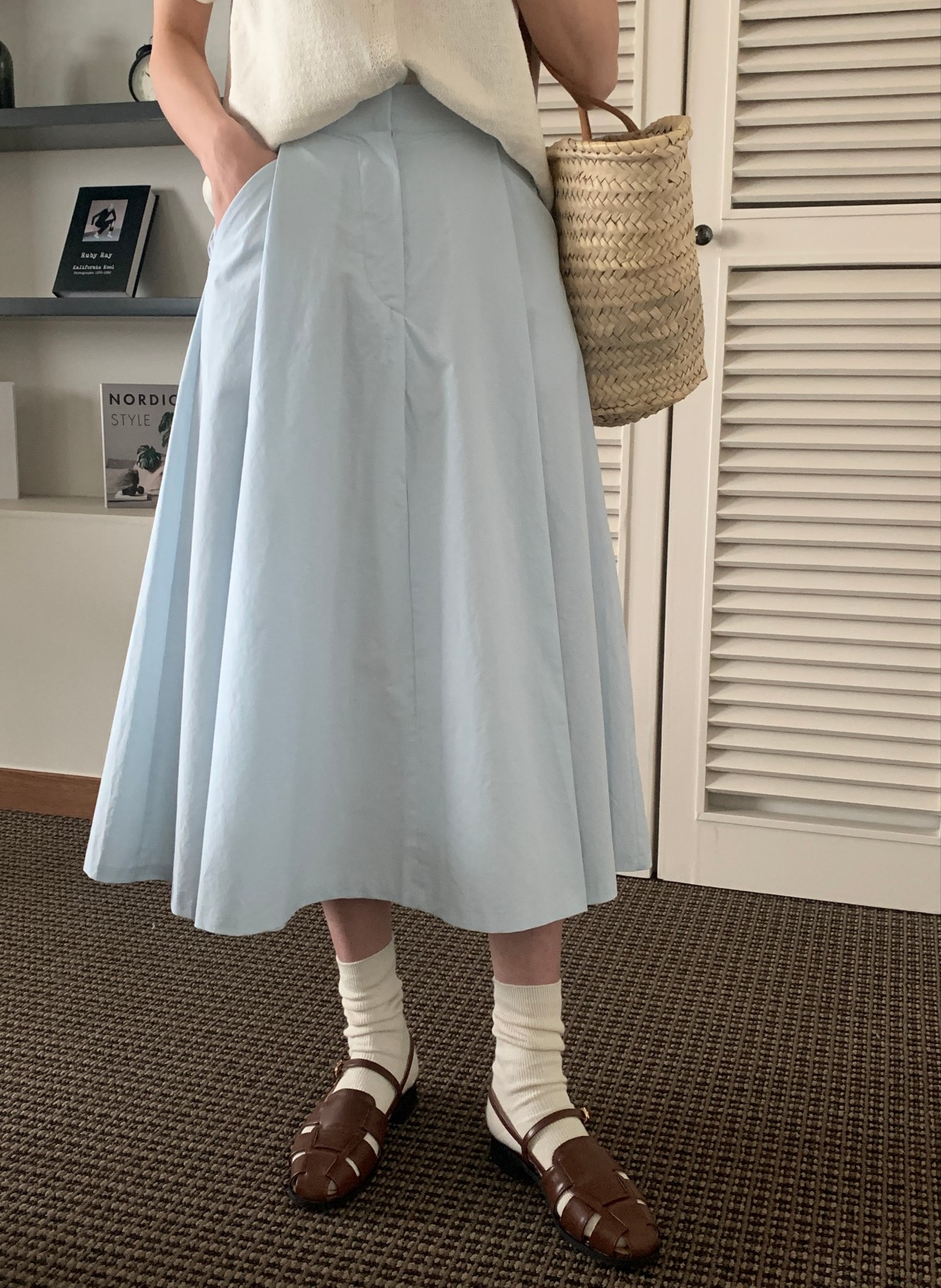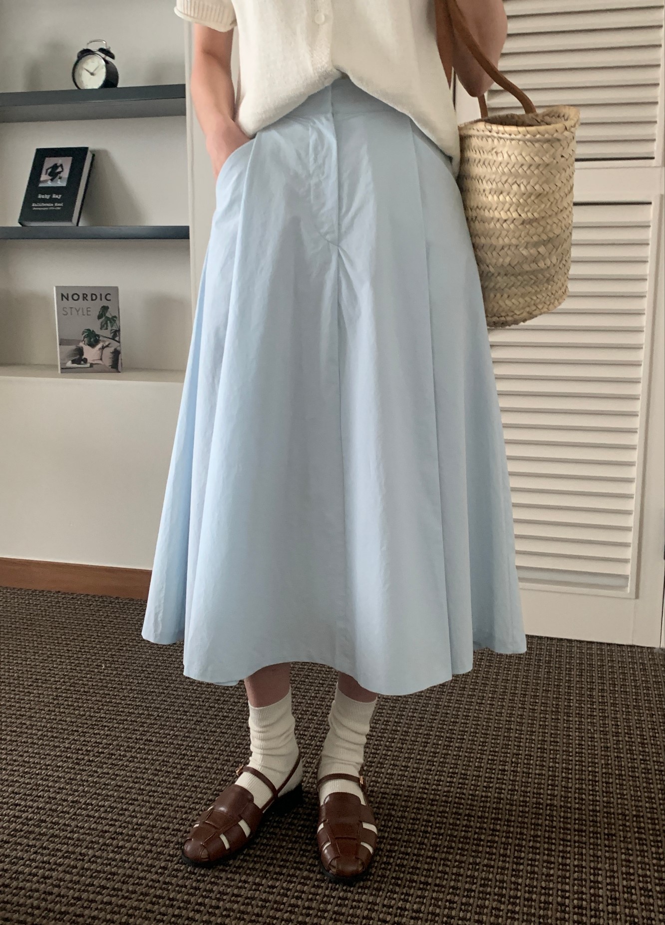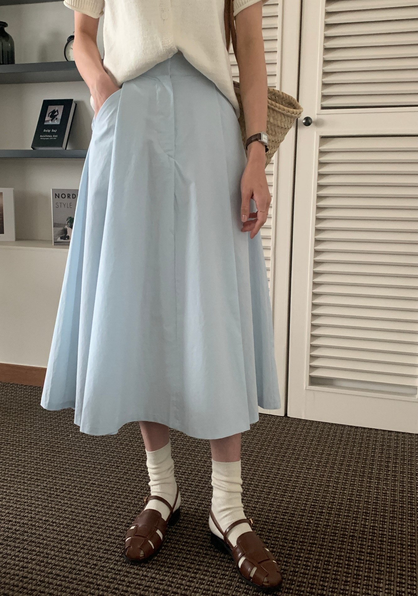 品名:베라스커트 ◎※☞颜色:소라, 아이보리 ◎※☞尺寸:FREE ◎※☞材质:纯棉 100% 翻译