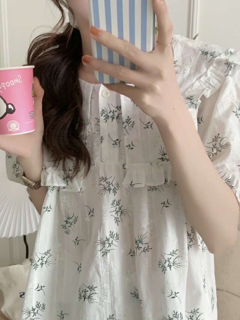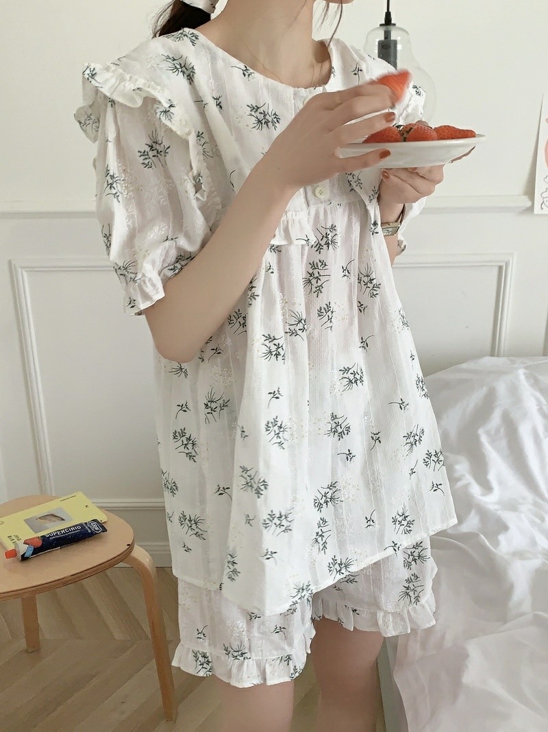品名:들레잠옷세트(파자마 홈웨어) ◎※☞颜色:화이트 ◎※☞尺寸:FREE ◎※☞材质:纯棉 100% 翻译
