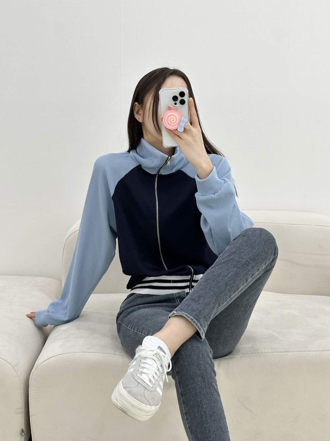 品名:바시티집업 ◎※☞颜色:소라, 아이보리 ◎※☞尺寸:FREE ◎※☞材质:스판 6%,聚酯 94% ◎※☞注意事项:只能干洗,只能手洗,不能手洗,机洗,不能使用漂白剂,不能烘干,不能熨烫,不能曲折 翻译