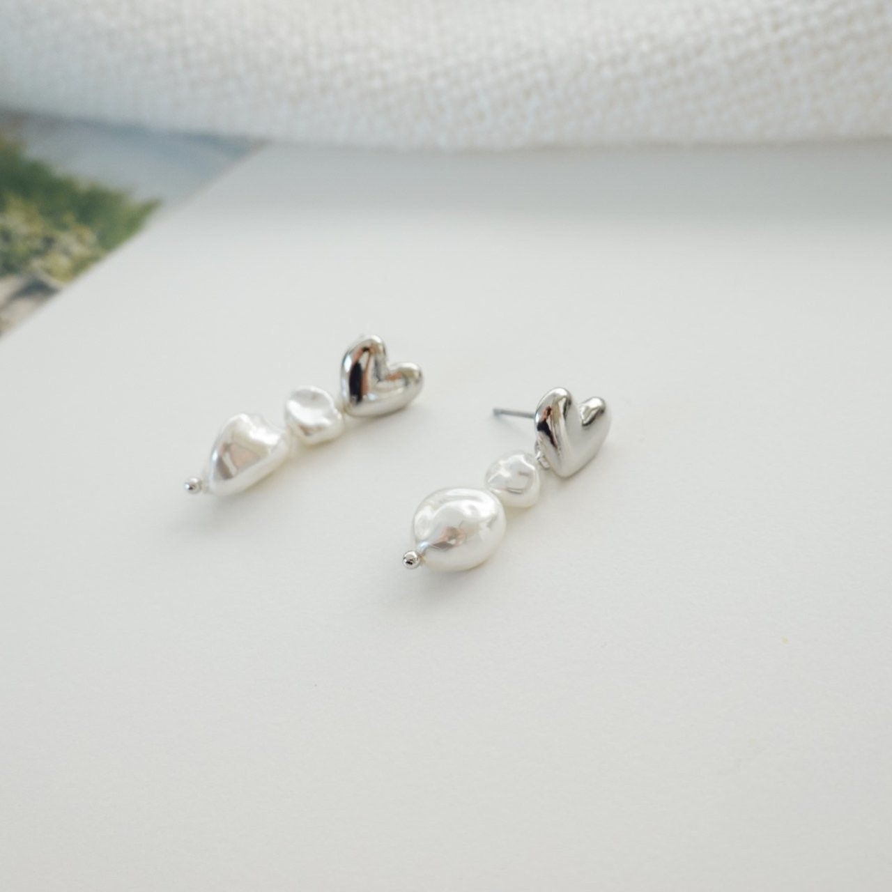 品名:E3035 하트 진주 귀걸이 ◎※☞颜色:골드, 실버 ◎※☞尺寸:FREE ◎※☞材质:镀金 0% 翻译