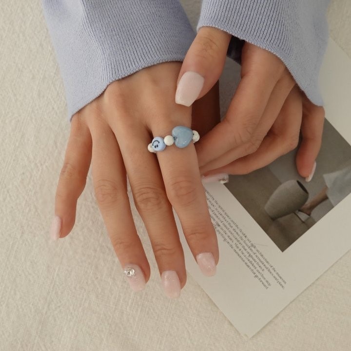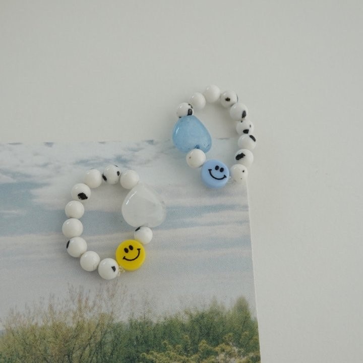 品名:R3035 스마일 하트 비즈반지 ◎※☞颜色:블루, 옐로우 ◎※☞尺寸:FREE ◎※☞材质:腈纶 0% 翻译