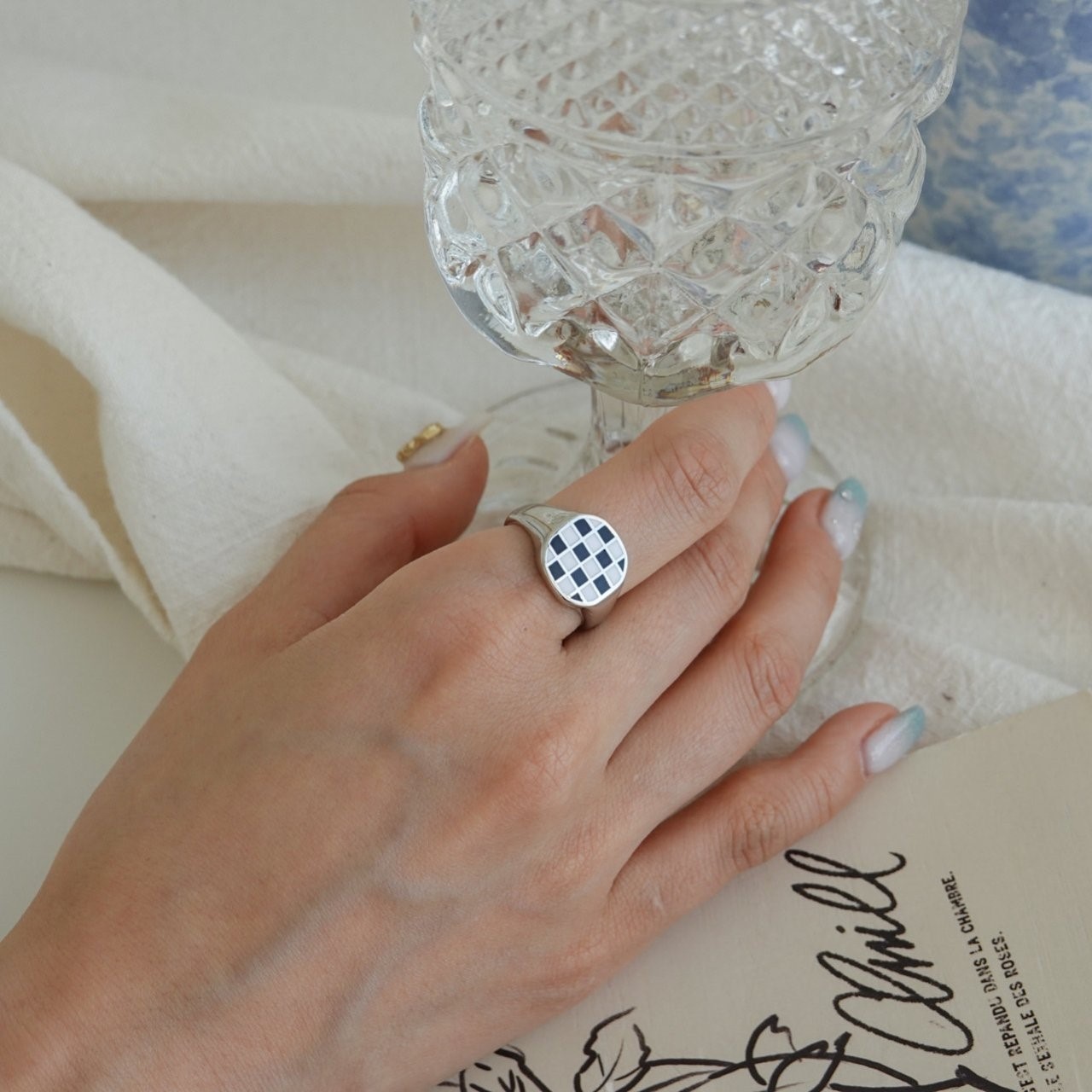 品名:R3010 체커 24k 골드도금 반지 ◎※☞颜色:골드, 실버 ◎※☞尺寸:FREE ◎※☞材质:镀金 0% 翻译