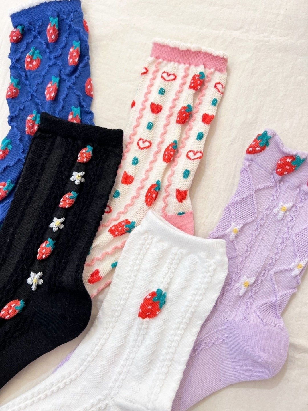 品名:딸기양말(만원이상주문주세요) ◎※☞颜色:보라, 블랙, 소라, 아이보리, 핑크 ◎※☞尺寸:F ◎※☞材质:스판 18%,纯棉 78%,聚酯 2% ◎※☞注意事项:只能干洗,只能手洗,不能手洗,机洗,不能使用漂白剂,不能烘干,不能熨烫,不能曲折