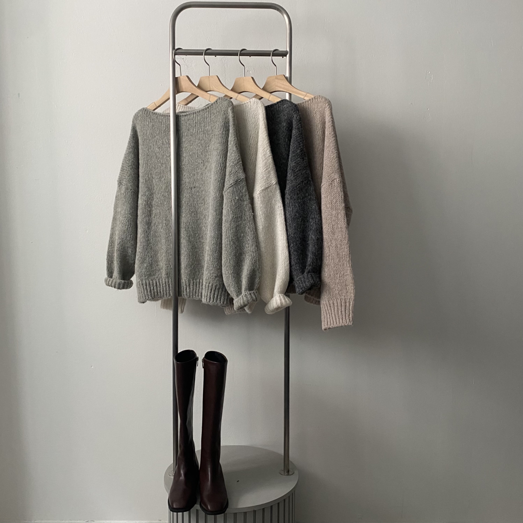品名:简约纯色一字领羊毛混纺毛衣 ◎※☞颜色:다크그레이, 베이지, 아이보리, 카키 ◎※☞尺寸:FREE ◎※☞材质:羊毛 25%,羊驼毛 5%,尼龙 26%,腈纶 44% 翻译