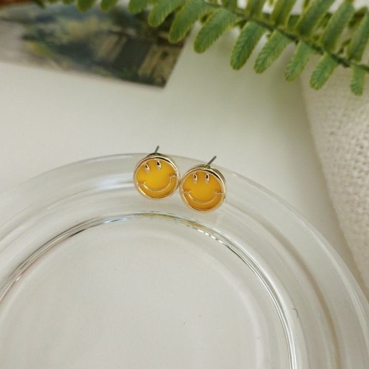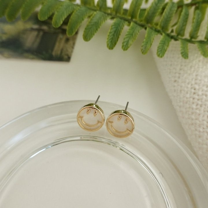 品名:E3078 스마일 귀걸이 ◎※☞颜色:옐로우, 핑크, 화이트 ◎※☞尺寸:FREE ◎※☞材质:镀金 0% 翻译