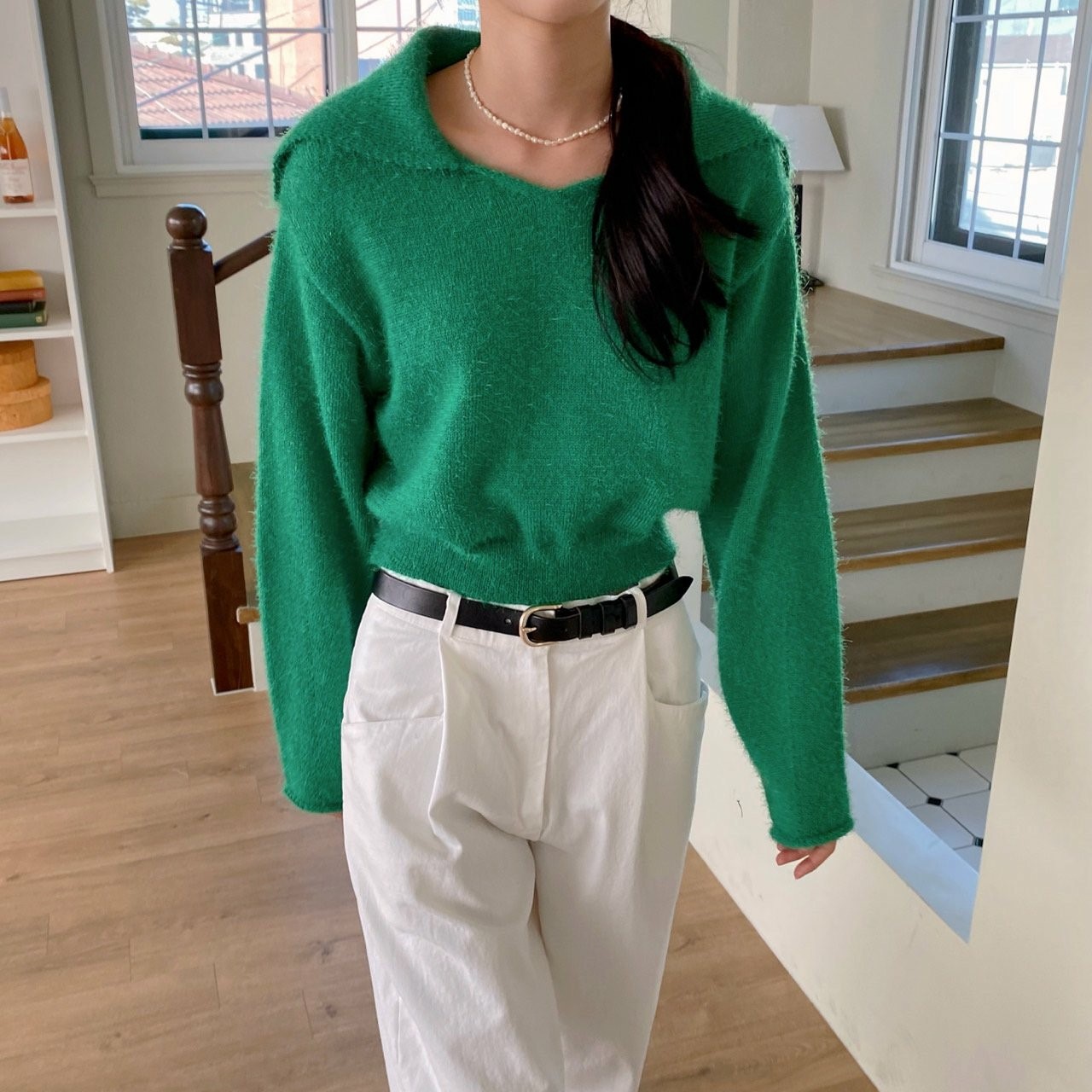 品名:솔잎카라니트 ◎※☞颜色:블랙, 아이보리, 초록, 핑크 ◎※☞尺寸:FREE ◎※☞材质:腈纶 60%,聚酯 40% 翻译
