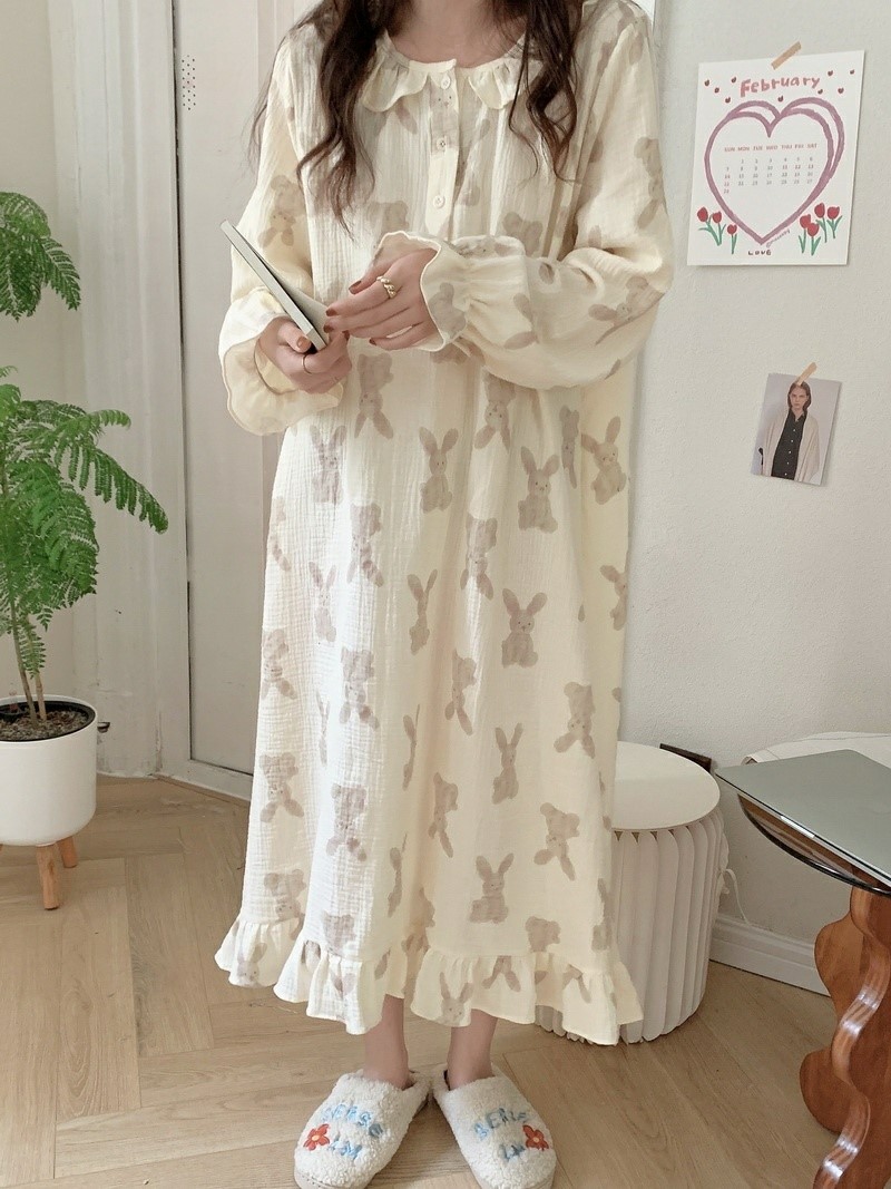 品名:긴팔핑크토끼잠옷원피스 ◎※☞颜色:아이보리, 핑크 ◎※☞尺寸:FREE ◎※☞材质:纯棉 100% 翻译