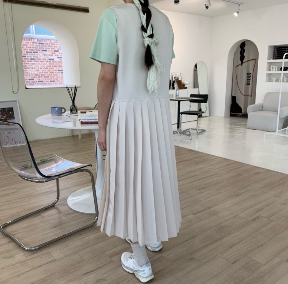 品名:纯色简约无袖百褶背心连衣裙 ◎※☞颜色:베이지 ◎※☞尺寸:FREE ◎※☞材质:弹力 6%,聚酯 73%,人造纤维 21% ◎※☞注意事项:只能干洗,只能手洗,不能手洗,机洗,不能使用漂白剂,不能烘干,不能熨烫,不能曲折