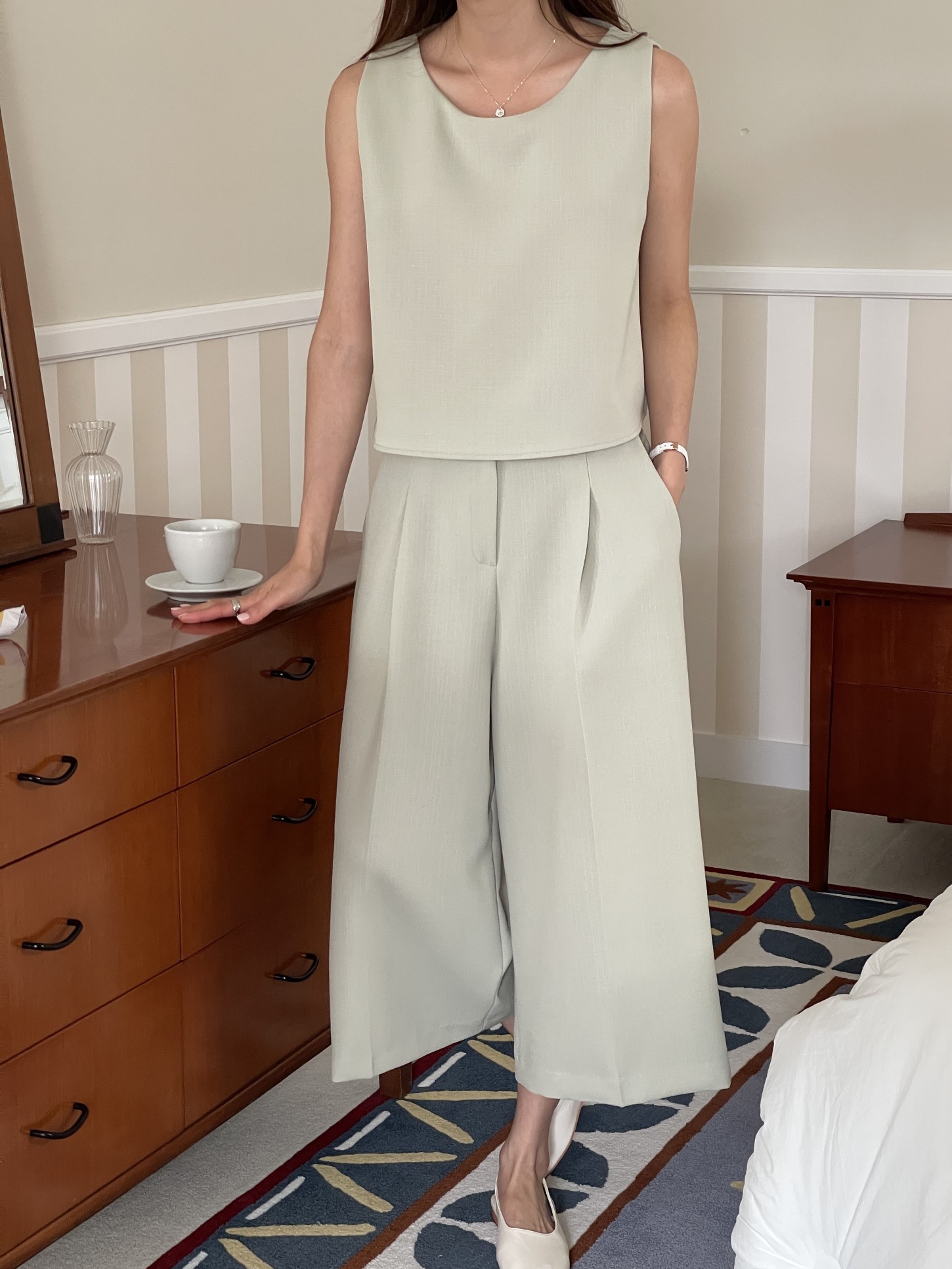 品名:마요SET(신상,세트,슬랙스,밴드슬랙스,나시) ◎※☞颜色:베이지, 연두 ◎※☞尺寸:FREE ◎※☞材质:聚酯 100% 翻译