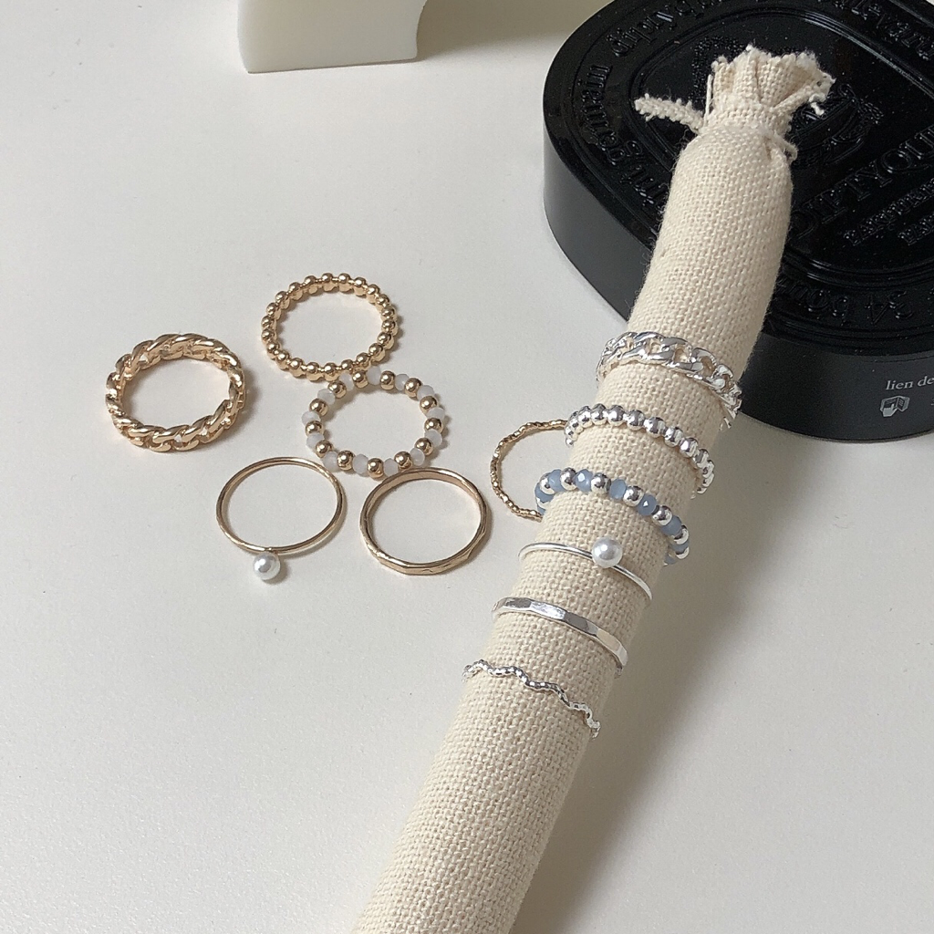 品名:RR1050(꽈배기반지 진주반지 비즈반지 레이어드링 세트반지 악세사리) ◎※☞颜色:골드, 실버 ◎※☞尺寸:FREE ◎※☞材质:黄铜 100% 翻译