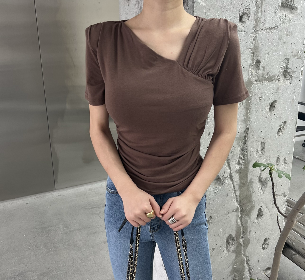 品名:바닐라T #어깨패드#셔링 ◎※☞颜色:브라운, 블랙, 아이 ◎※☞尺寸:FREE ◎※☞材质:聚酯 62%,人造纤维 34%,弹力 4% 翻译