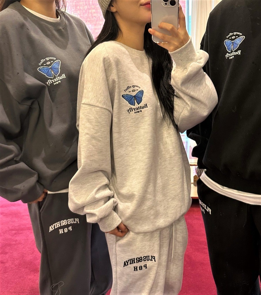 品名:SS신상))버터플라이 맨투맨 ◎※☞颜色:먹색, 백메란지, 블랙 ◎※☞尺寸:FREE ◎※☞材质:纯棉 50%,聚酯 50% 翻译