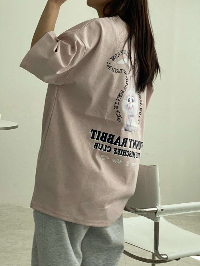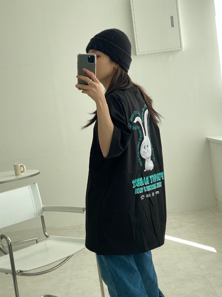 品名:버니버니반팔 ◎※☞颜色:블랙, 연핑크, 화이트 ◎※☞尺寸:FREE ◎※☞材质:纯棉 50%,聚酯 45%,스판 5% 翻译
