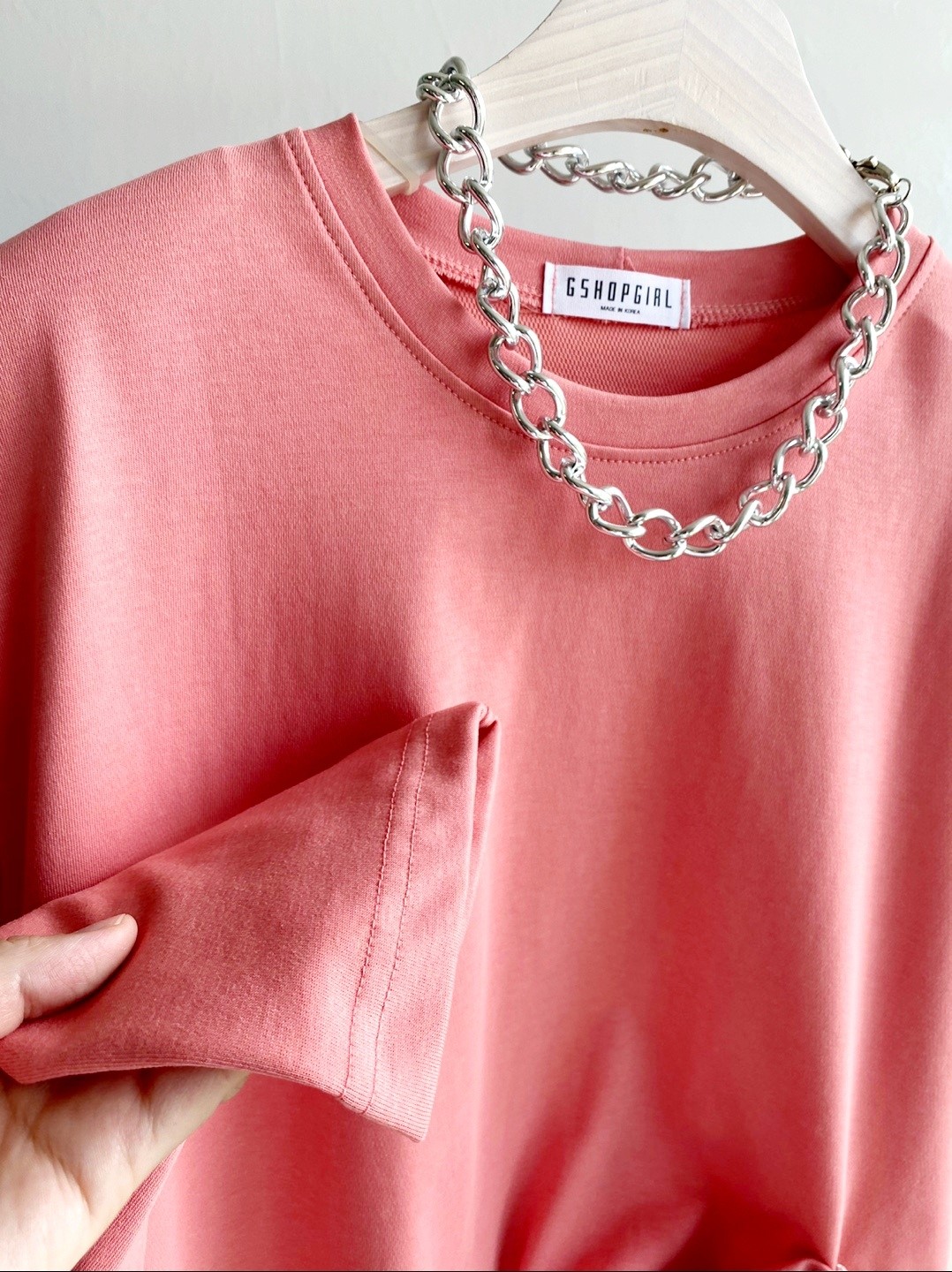 品名:❤️세일ㅡ어깨패드티 ◎※☞颜色:코랄핑크 ◎※☞尺寸:FREE ◎※☞材质:纯棉 50%,聚酯 50% ◎※☞注意事项:只能干洗,只能手洗,不能手洗,机洗,不能使用漂白剂,不能烘干,不能熨烫,不能曲折 翻译