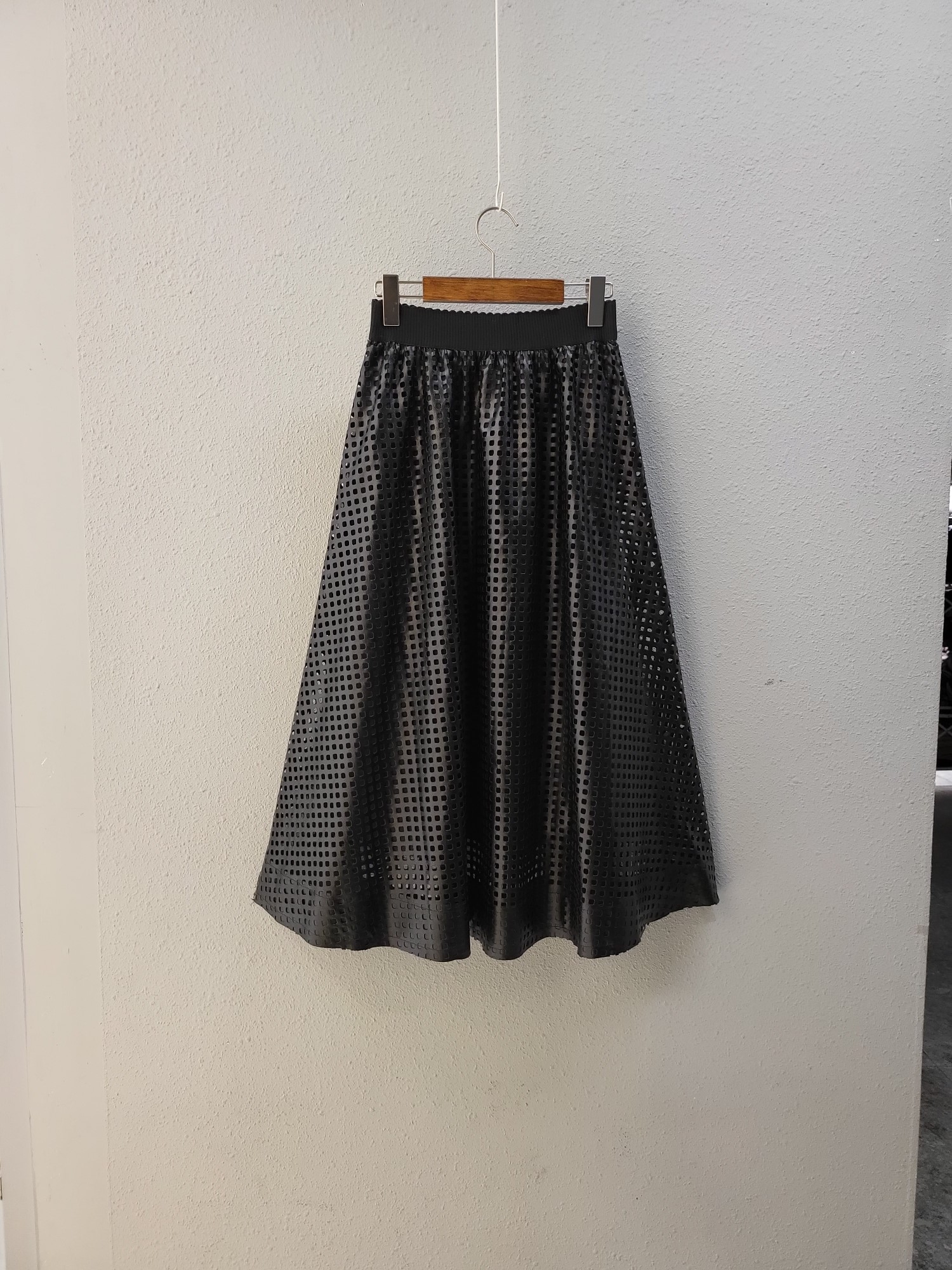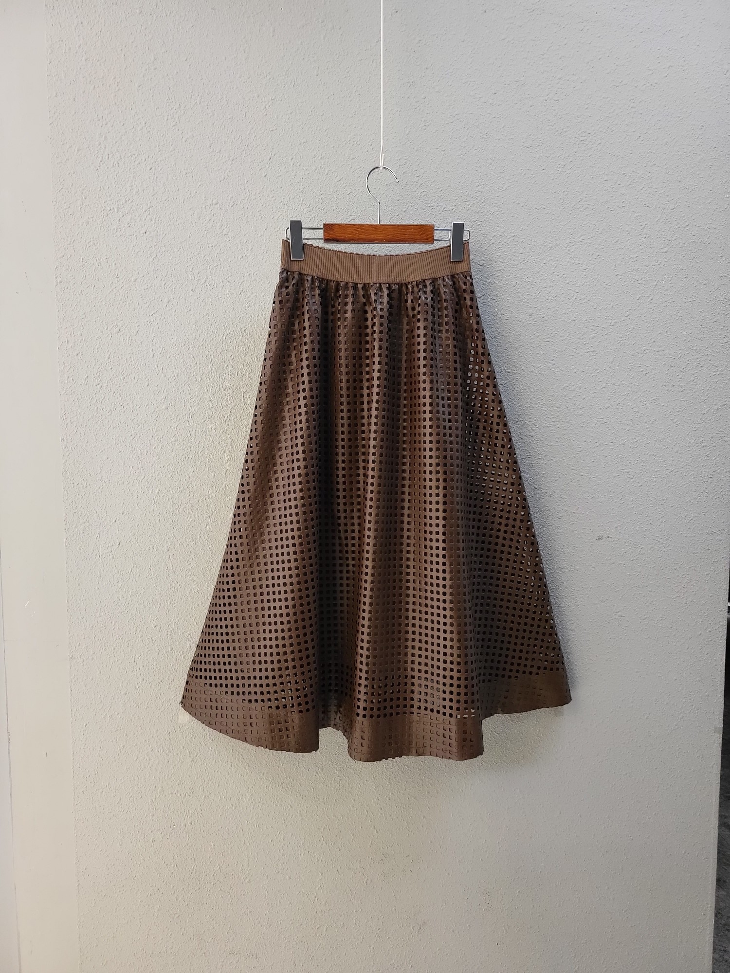 品名:러블리 밴드 가죽 펀칭 스커트 ◎※☞颜色:브라운, 블랙, 아이보리 ◎※☞尺寸:FREE ◎※☞材质:合成皮革 100% 翻译