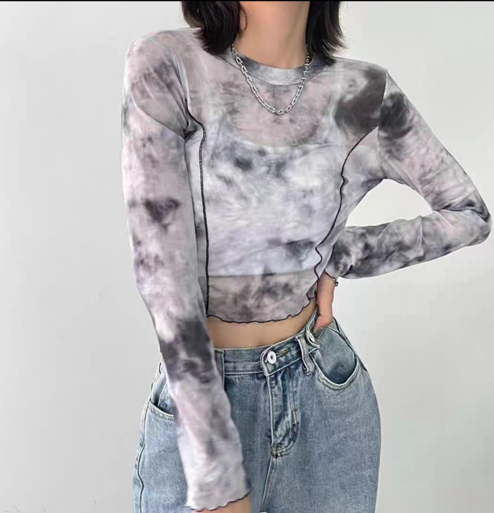 品名:신상출고 2075번 크롭티 마블나염 시스루 타이다이나염티 ◎※☞颜色:블랙 ◎※☞尺寸:FREE ◎※☞材质:聚酯 100% 翻译