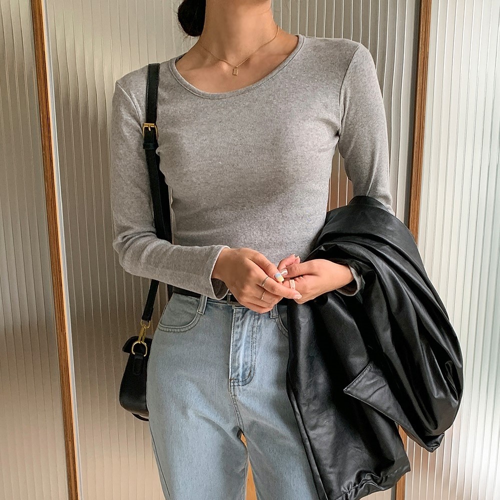 品名:윈터 라운드 긴팔티 ◎※☞颜色:그레이, 블랙, 화이트 ◎※☞尺寸:FREE ◎※☞材质:纯棉 100% 翻译