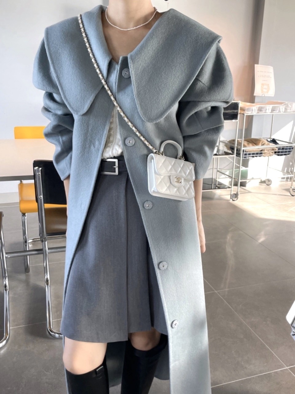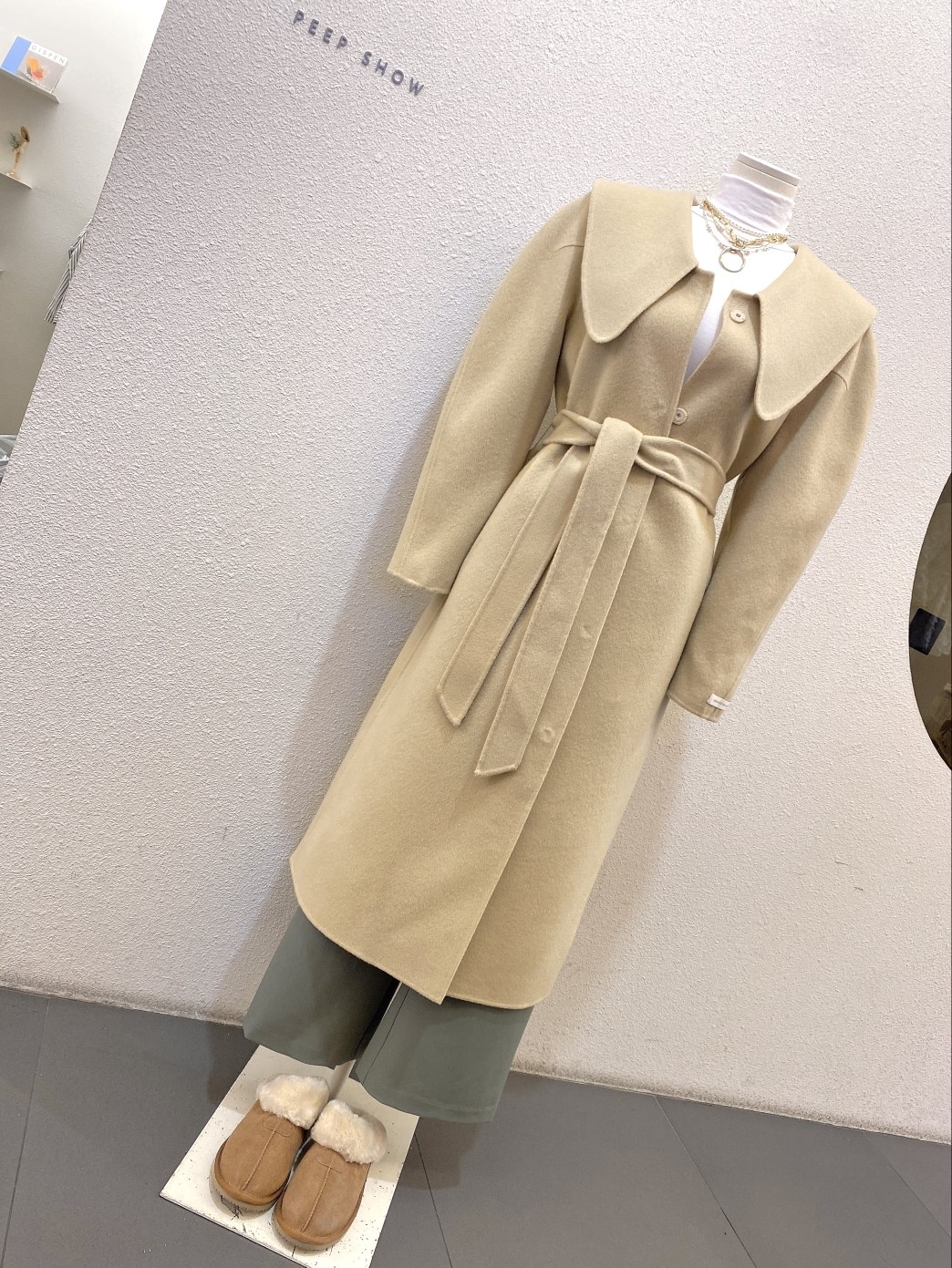 品名:세일)퍼프스텐롱CT 핸드메이드 핸드코트 하이퀄리티 퍼프소매 벌룬 아방 유니크 벨티드 빅카라 세일러 sale ◎※☞颜色:다크베이지, 라이트베이지, 블랙, 소라 ◎※☞尺寸:FREE ◎※☞材质:尼龙 10%,羊毛 90%
