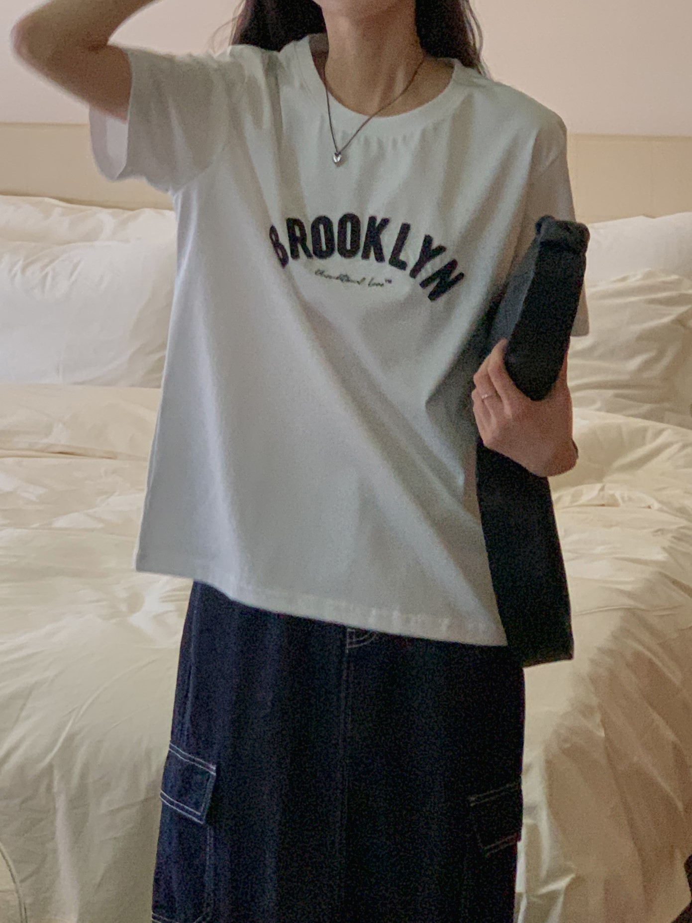 品名:2023SS - 브루클린 자수 티셔츠 ◎※☞颜色:네이비, 아이보리 ◎※☞尺寸:FREE ◎※☞材质:纯棉 82%,聚酯 18% 翻译