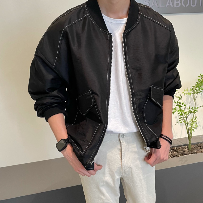 品名:스티치 오버핏 블루종 ◎※☞颜色:블랙, 화이트 ◎※☞尺寸:FREE ◎※☞材质:尼龙 50%,聚酯 50% 翻译
