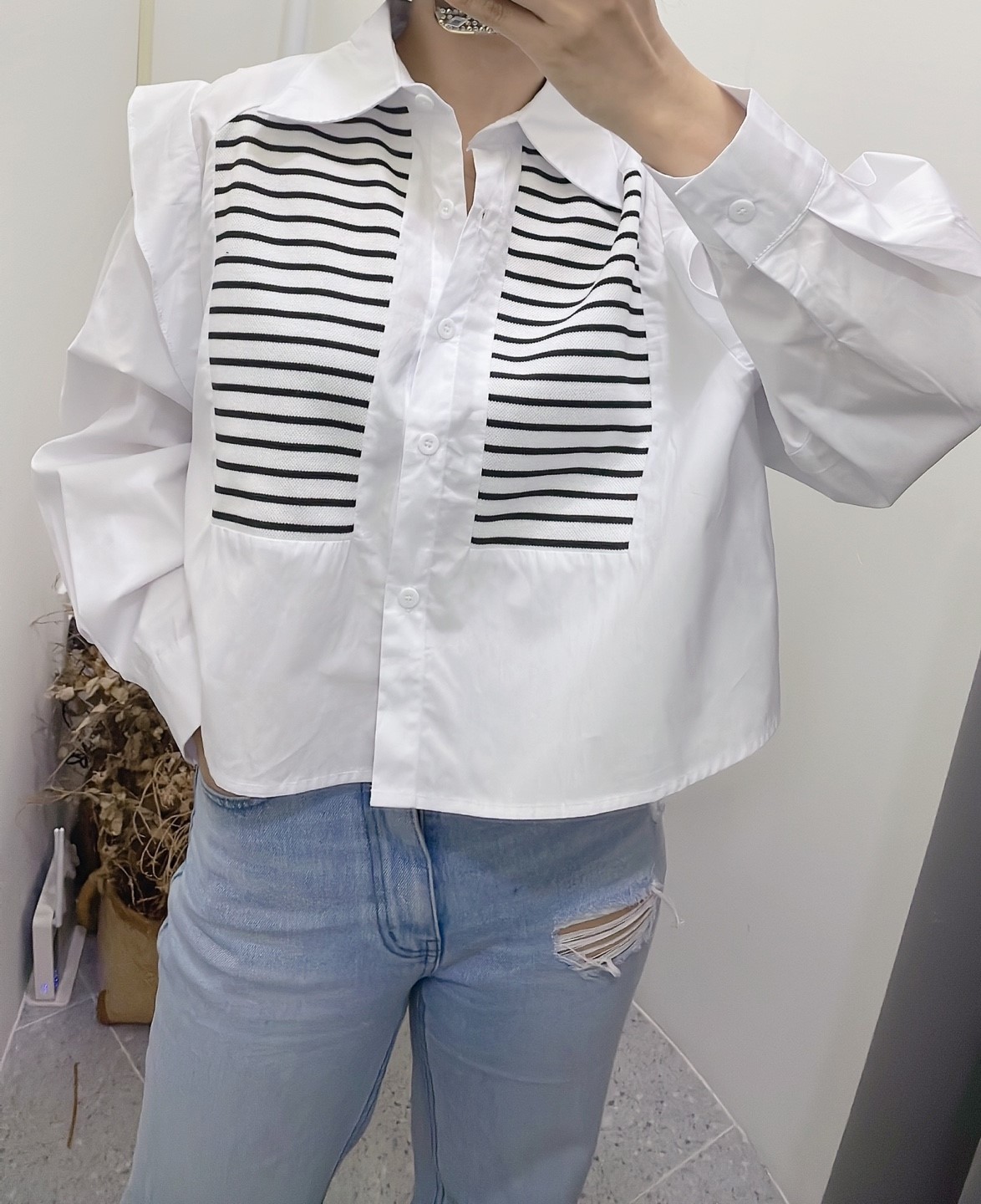 品名:배색프릴셔츠 #여성상의캐주얼시크로맨틱럭셔리간절기봄신상 ◎※☞颜色:블랙, 화이트 ◎※☞尺寸:FREE ◎※☞材质:纯棉 100% 翻译