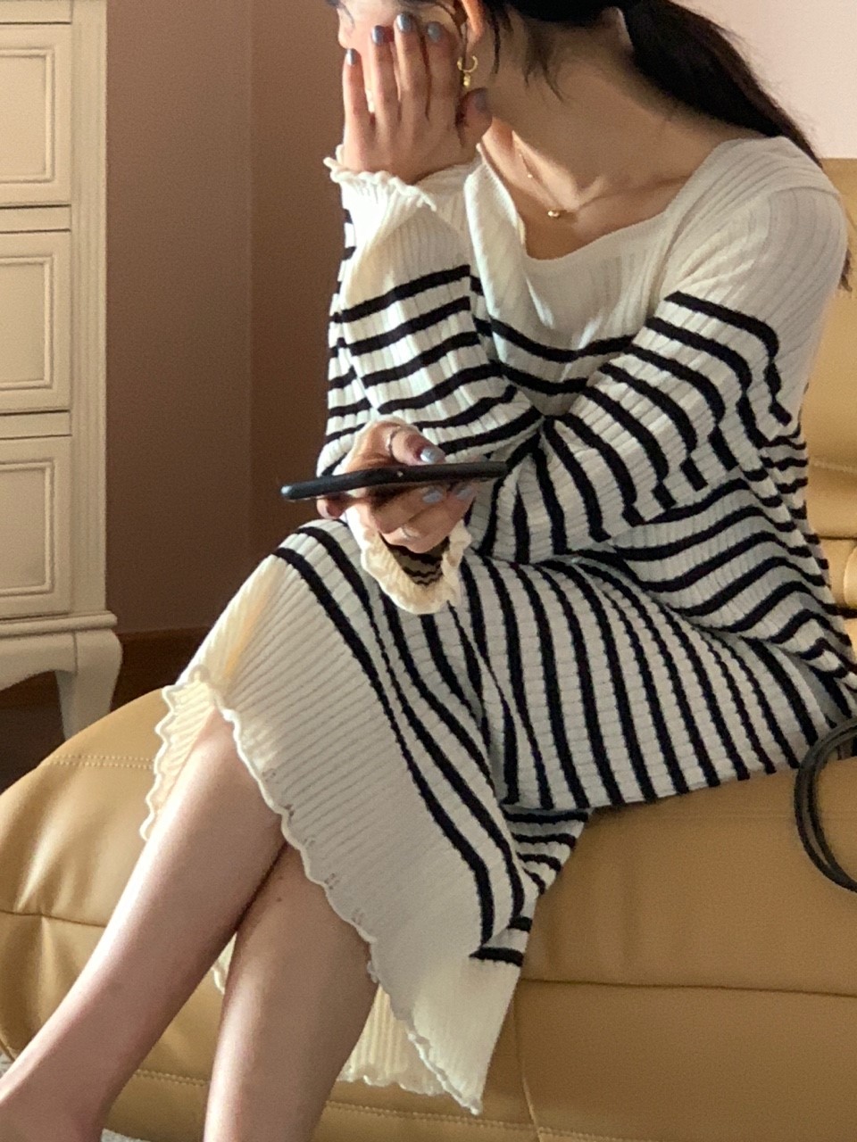 品名:时尚条纹方领长袖连衣裙 ◎※☞颜色:네이비, 블랙, 소라 ◎※☞尺寸:FREE ◎※☞材质:腈纶 100% ◎※☞注意事项:只能干洗,只能手洗,不能手洗,机洗,不能使用漂白剂,不能烘干,不能熨烫,不能曲折 翻译