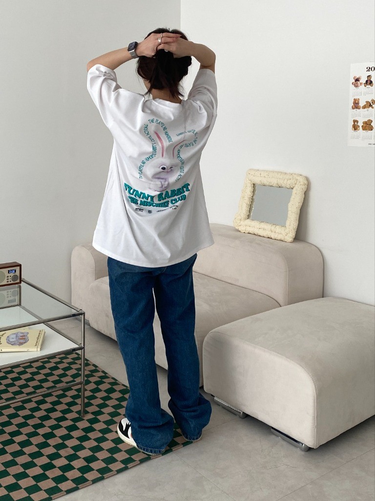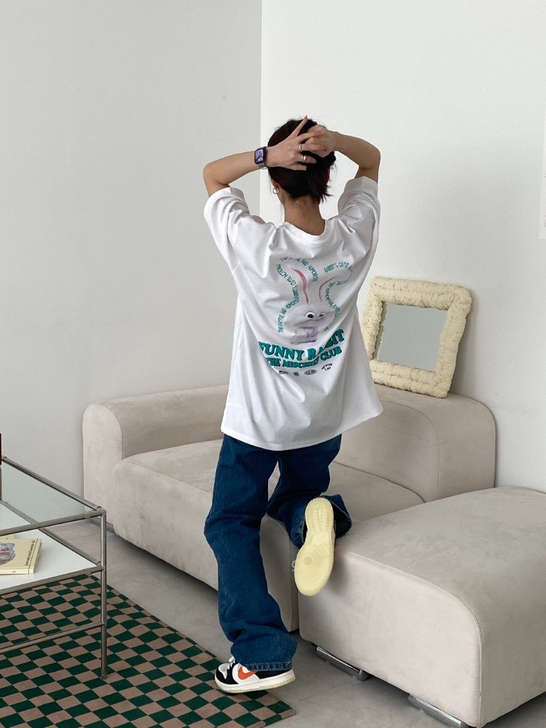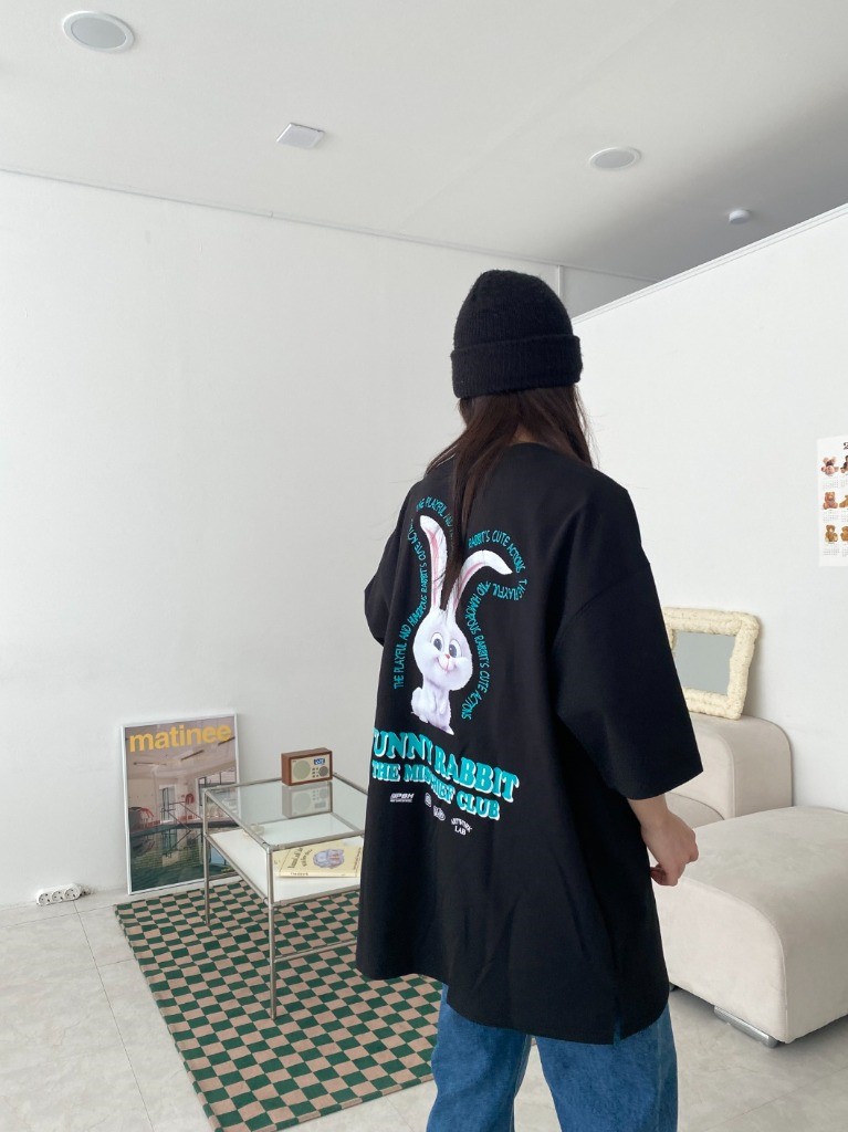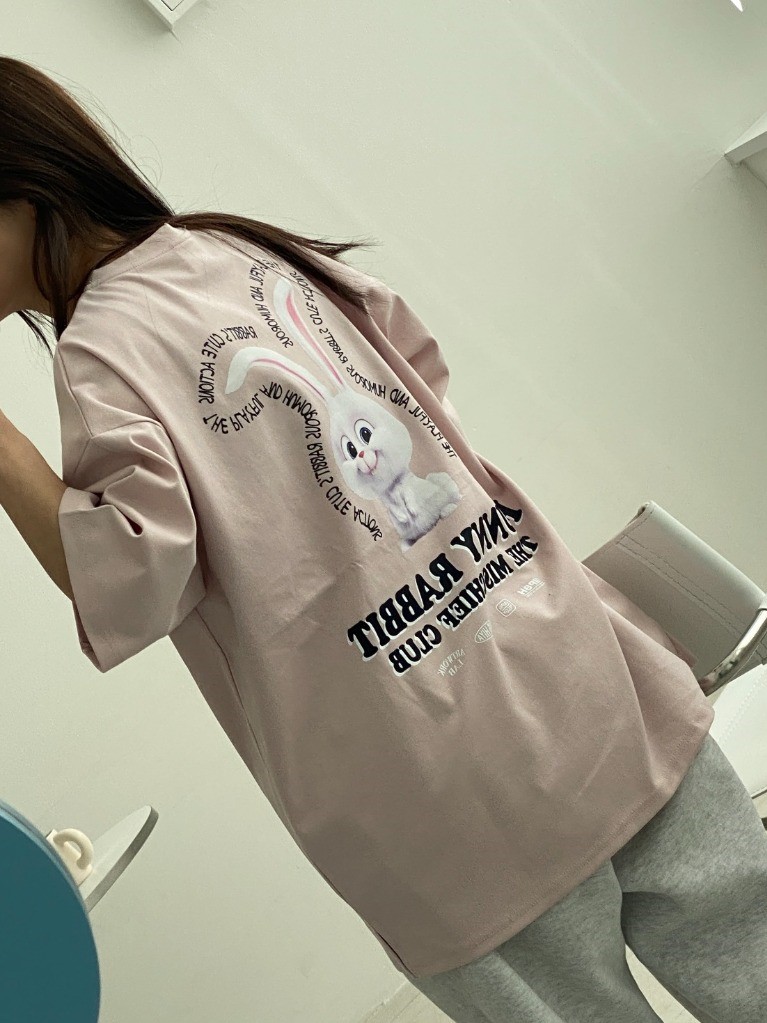 品名:버니버니반팔 ◎※☞颜色:블랙, 연핑크, 화이트 ◎※☞尺寸:FREE ◎※☞材质:纯棉 50%,聚酯 45%,스판 5% 翻译