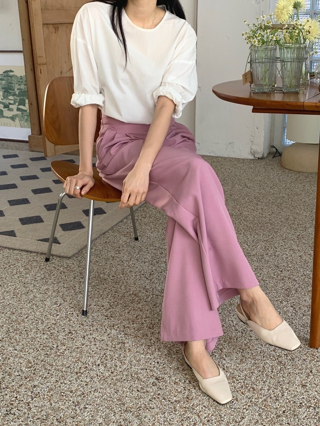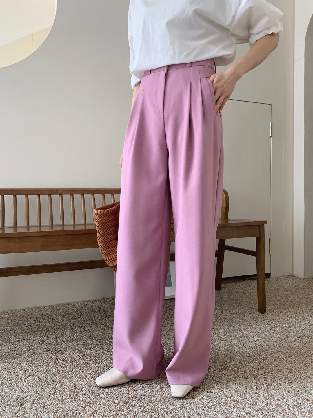 品名:컬러와이드 슬렉스 ◎※☞颜色:블랙, 블루, 핑크 ◎※☞尺寸:L, M, S ◎※☞材质:스판 4%,聚酯 96% 翻译