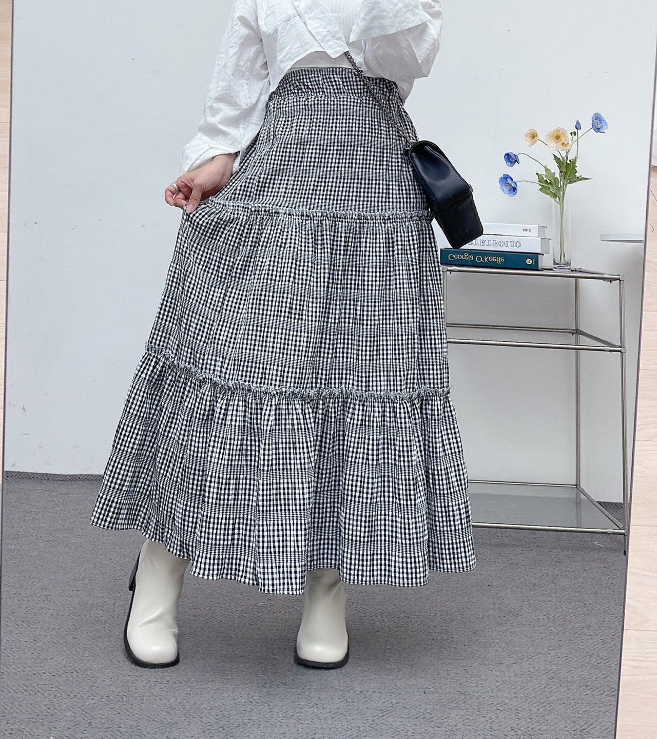 品名:지지미체크롱스커트 #여성하의밴드스커트치마간절기봄여름피크닉룩시크로맨틱 ◎※☞颜色:블랙, 소라 ◎※☞尺寸:FREE ◎※☞材质:纯棉 100% 翻译