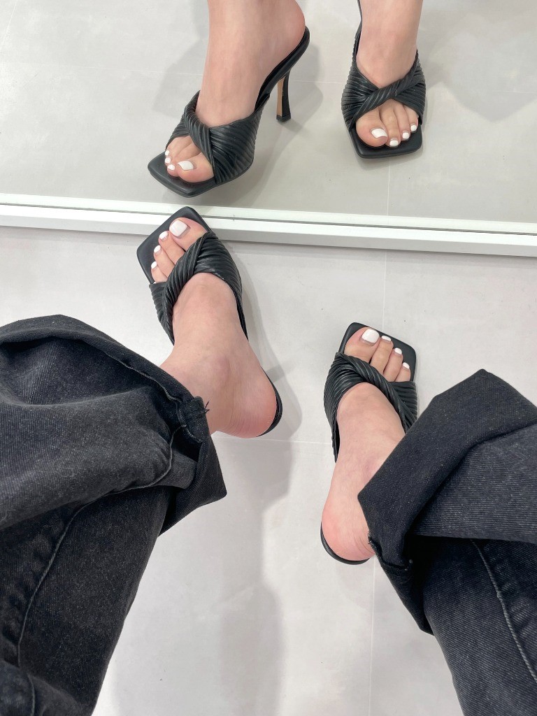 品名:1087 8cm 스퀘어 꼬임 스트랩 뮬 힐 슬리퍼 ◎※☞颜色:베이지, 블랙, 화이트 ◎※☞尺寸:225, 230, 235, 240, 245, 250 ◎※☞材质:合成皮革 0% 翻译