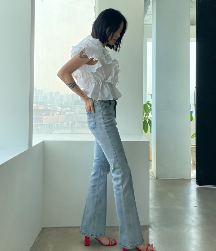品名:519 롤러 얼룩이 스판 부츠컷 ◎※☞颜色:청 ◎※☞尺寸:L, M, S ◎※☞材质:纯棉 98%,聚氨酯 2% ◎※☞注意事项:只能干洗,只能手洗,不能手洗,机洗,不能使用漂白剂,不能烘干,不能熨烫,不能曲折