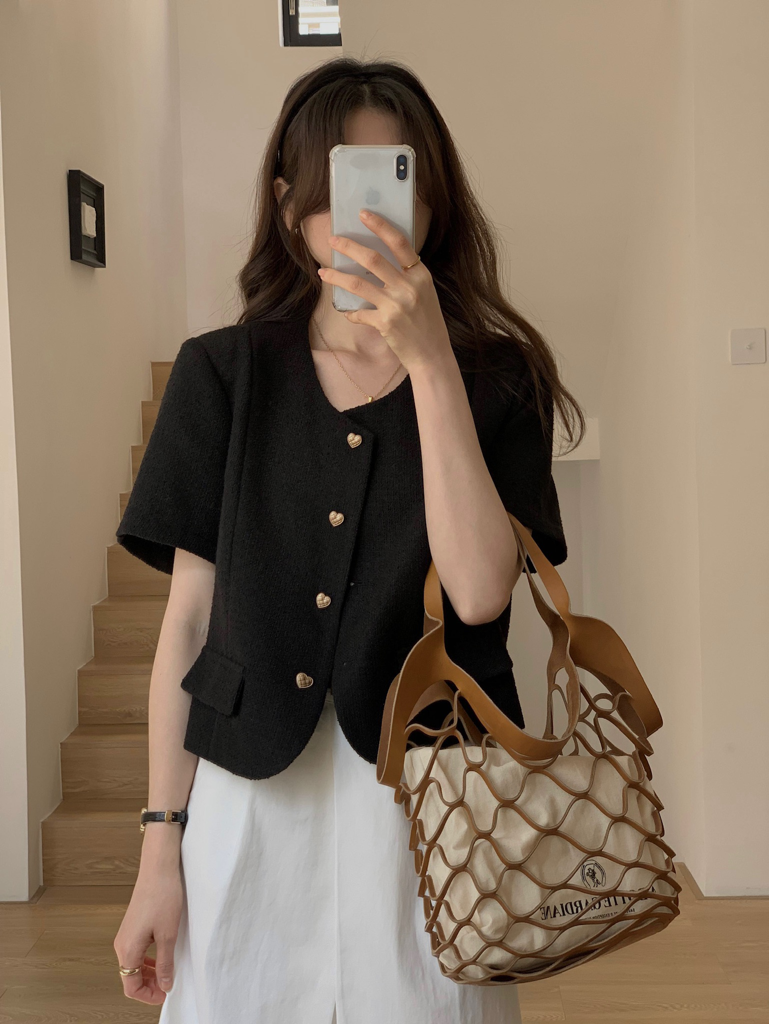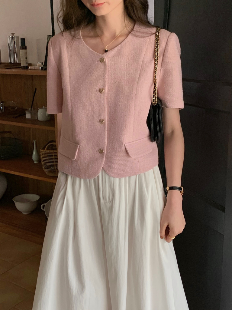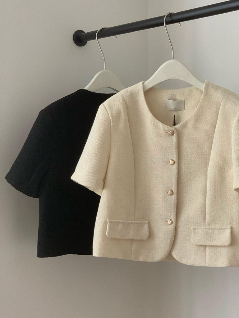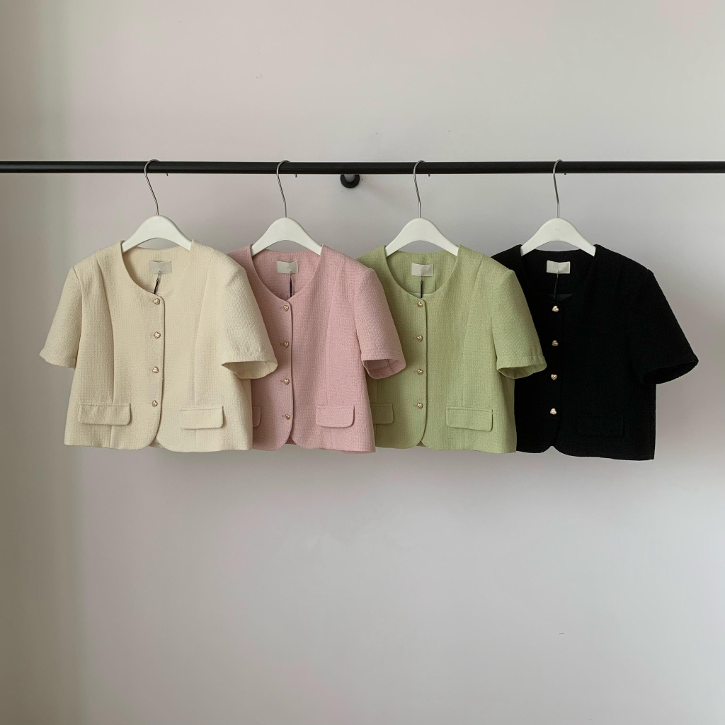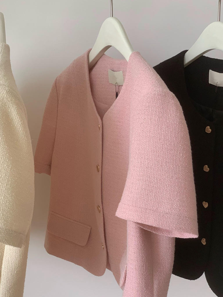 品名:포켓 트위드자켓 ◎※☞颜色:블랙, 아이보리, 초록, 핑크 ◎※☞尺寸:FREE ◎※☞材质:매장문의 100% 翻译