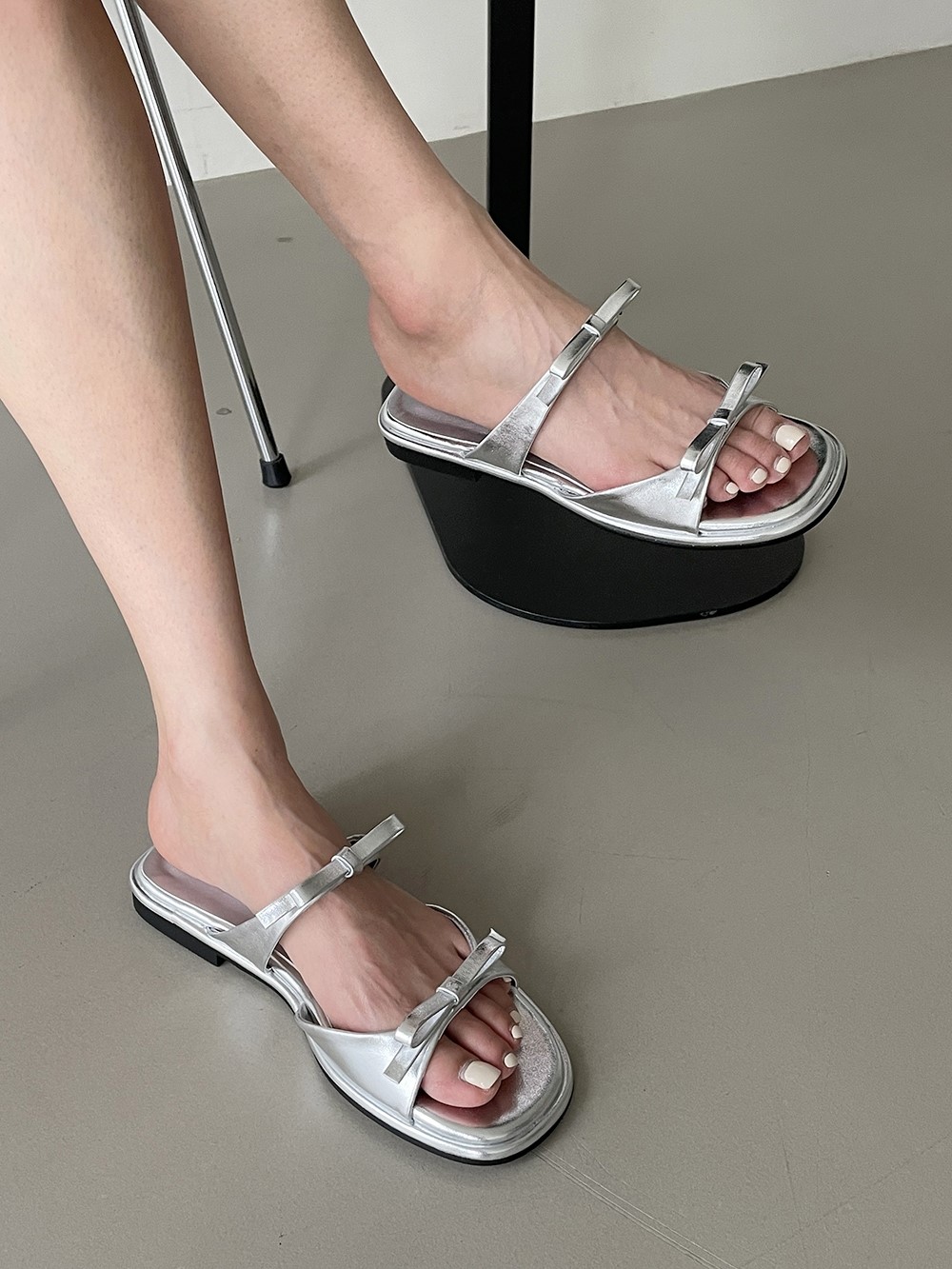 品名:[신상,투라인 매듭리본 샌들 슬리퍼]1325 ◎※☞颜色:블랙, 실버, 아이보리, 핑크 ◎※☞尺寸:225, 230, 235, 240, 245, 250 ◎※☞材质:合成皮革 0% 翻译