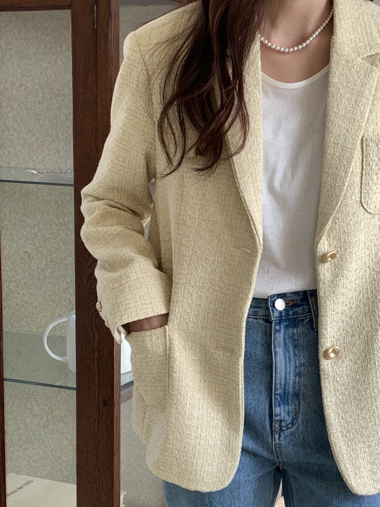 品名:네임트위드JK ◎※☞颜色:옐로우, 화이트 ◎※☞尺寸:FREE ◎※☞材质:聚酯 80%,羊毛 20% ◎※☞注意事项:只能干洗,只能手洗,不能手洗,机洗,不能使用漂白剂,不能烘干,不能熨烫,不能曲折 翻译