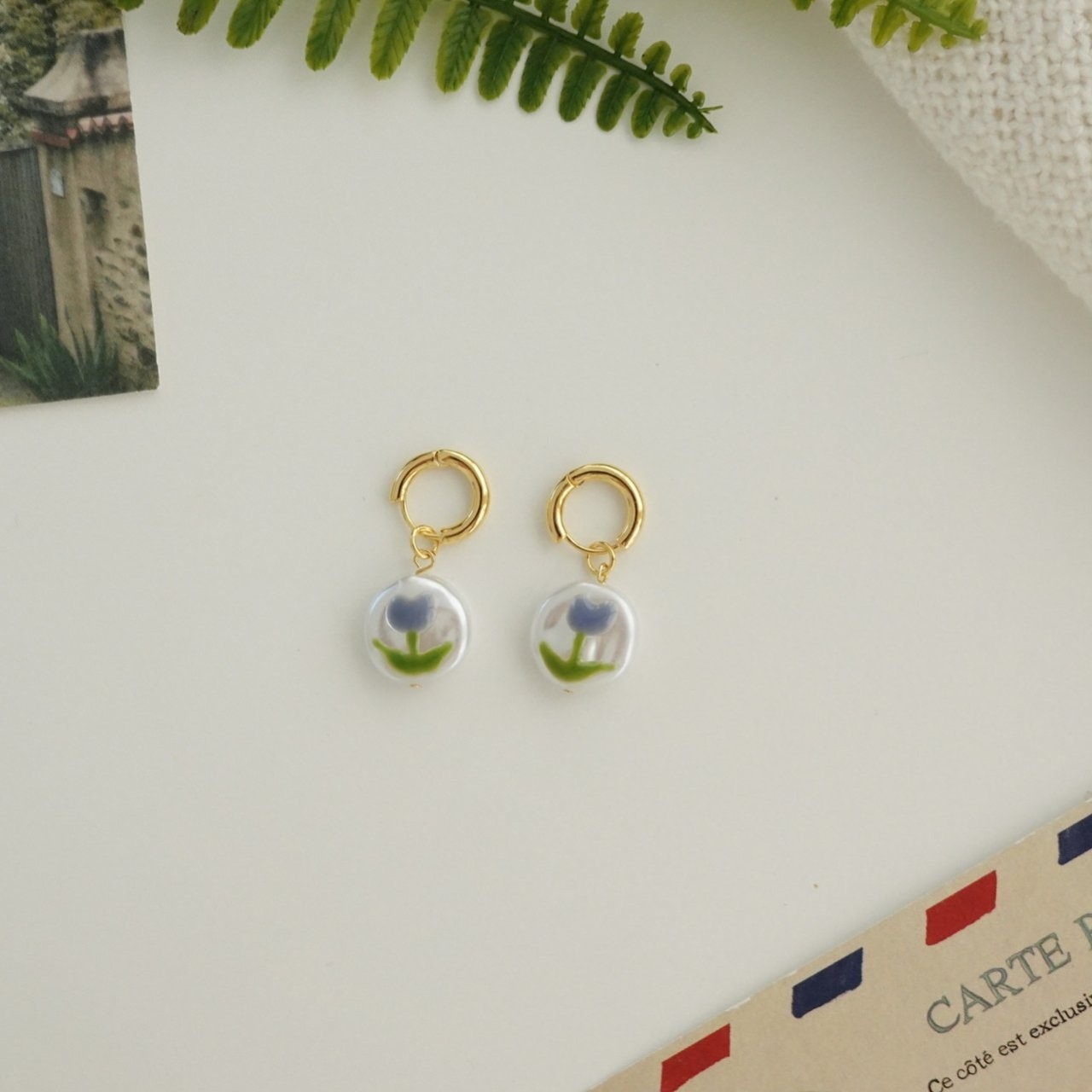 品名:E3023 튤립 귀걸이 ◎※☞颜色:레드, 블루 ◎※☞尺寸:FREE ◎※☞材质:镀金 0% 翻译