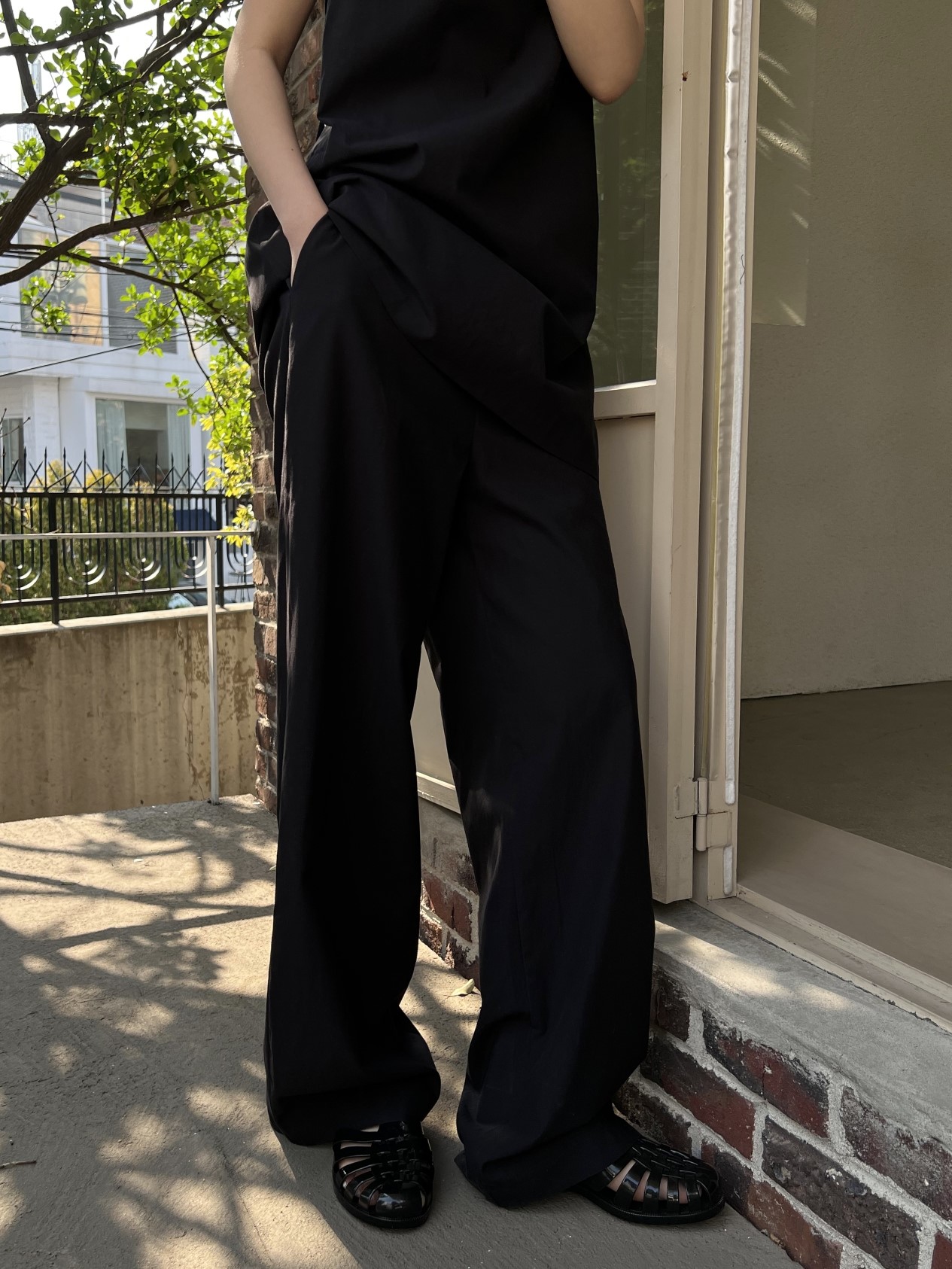品名:宽松舒适松紧腰休闲裤 ◎※☞颜色:민트, 블랙 ◎※☞尺寸:FREE ◎※☞材质:纯棉 45%,天丝 55% ◎※☞注意事项:只能干洗,只能手洗,不能手洗,机洗,不能使用漂白剂,不能烘干,不能熨烫,不能曲折 翻译