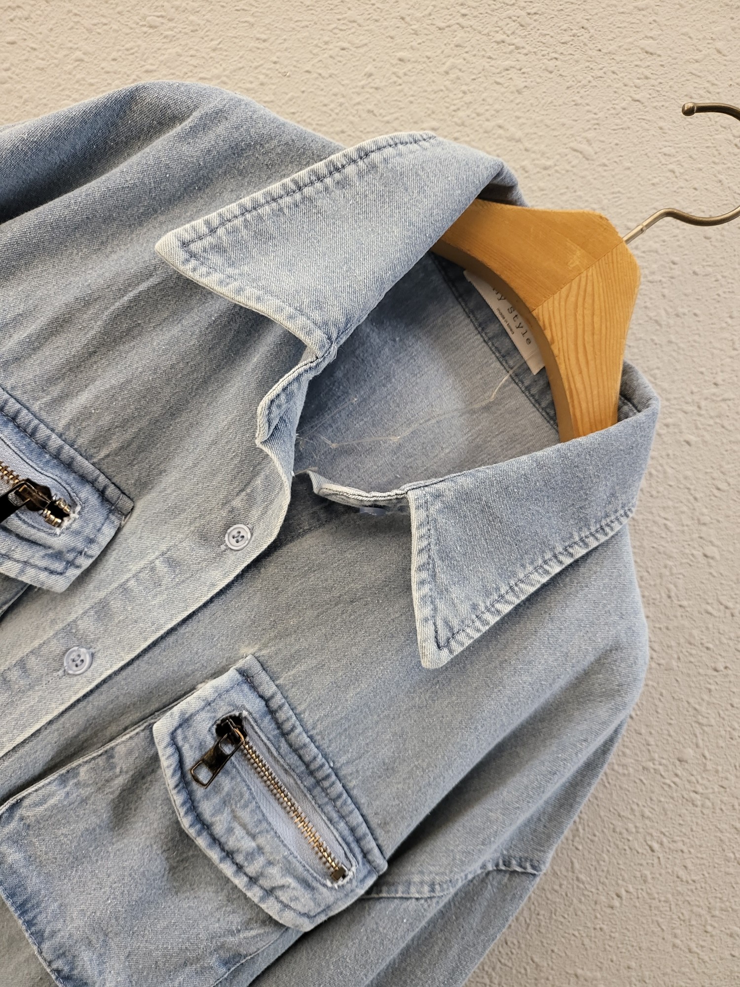 品名:지퍼 포켓 포인트 이지 데님 자켓 ◎※☞颜色:청 ◎※☞尺寸:FREE ◎※☞材质:纯棉 100% ◎※☞注意事项:只能干洗,只能手洗,不能手洗,机洗,不能使用漂白剂,不能烘干,不能熨烫,不能曲折 翻译