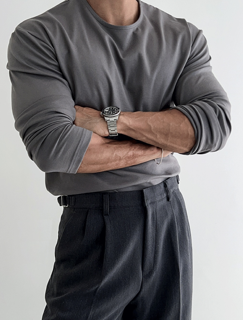 品名:纯色简约开叉长袖T恤 ◎※☞颜色:검정, 메란지, 백메란지, 베이지, 아이, 연곤, 진곤, 차콜 ◎※☞尺寸:L, M, XL ◎※☞材质:纯棉 50%,聚酯 45%,스판 5% 翻译