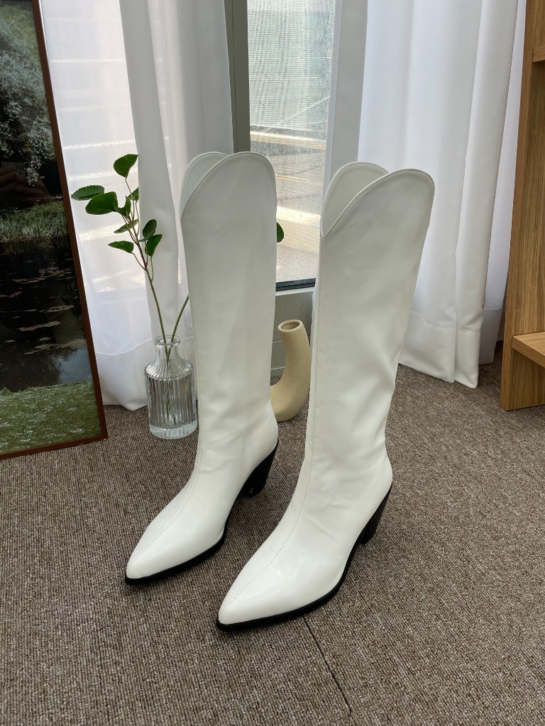品名:1077 6.5cm 스틸레토 웨스턴 롱부츠 ◎※☞颜色:블랙, 화이트 ◎※☞尺寸:225, 230, 235, 240, 245, 250 ◎※☞材质:合成皮革 0% 翻译